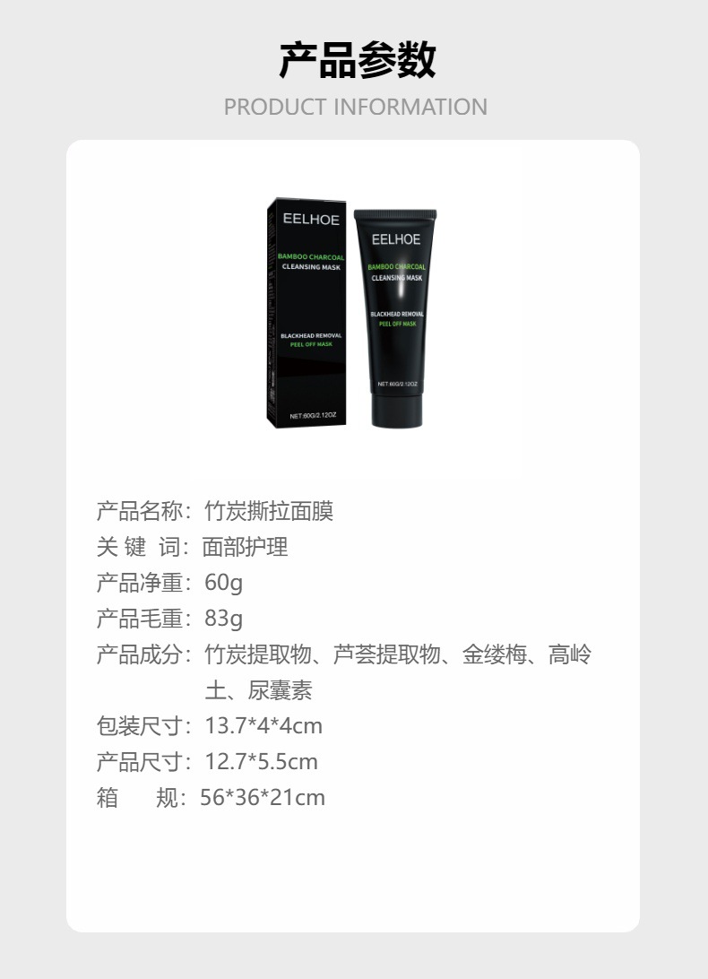 EELHOE竹炭去黑头剥离面膜 T区深层清洁涂抹撕拉面膜专供出口 English | 投诉