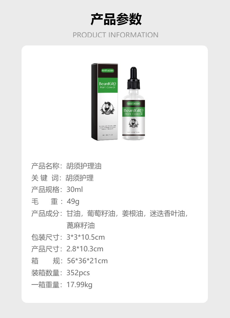 EAST MOON 胡须护理油 男士胡子油胡须滋养强韧胡子护理液专供出口 English | 投诉