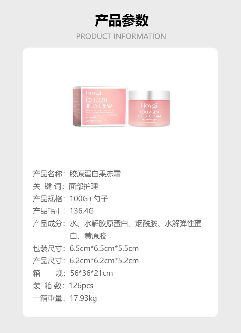 HOYGI 胶原蛋白果冻霜 温和清洁面部保湿滋润啫喱面膜霜专供出口 English | 投诉