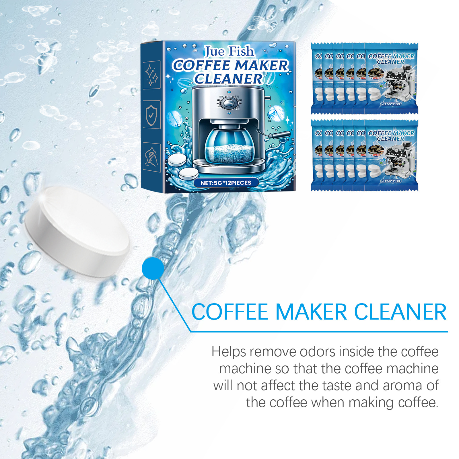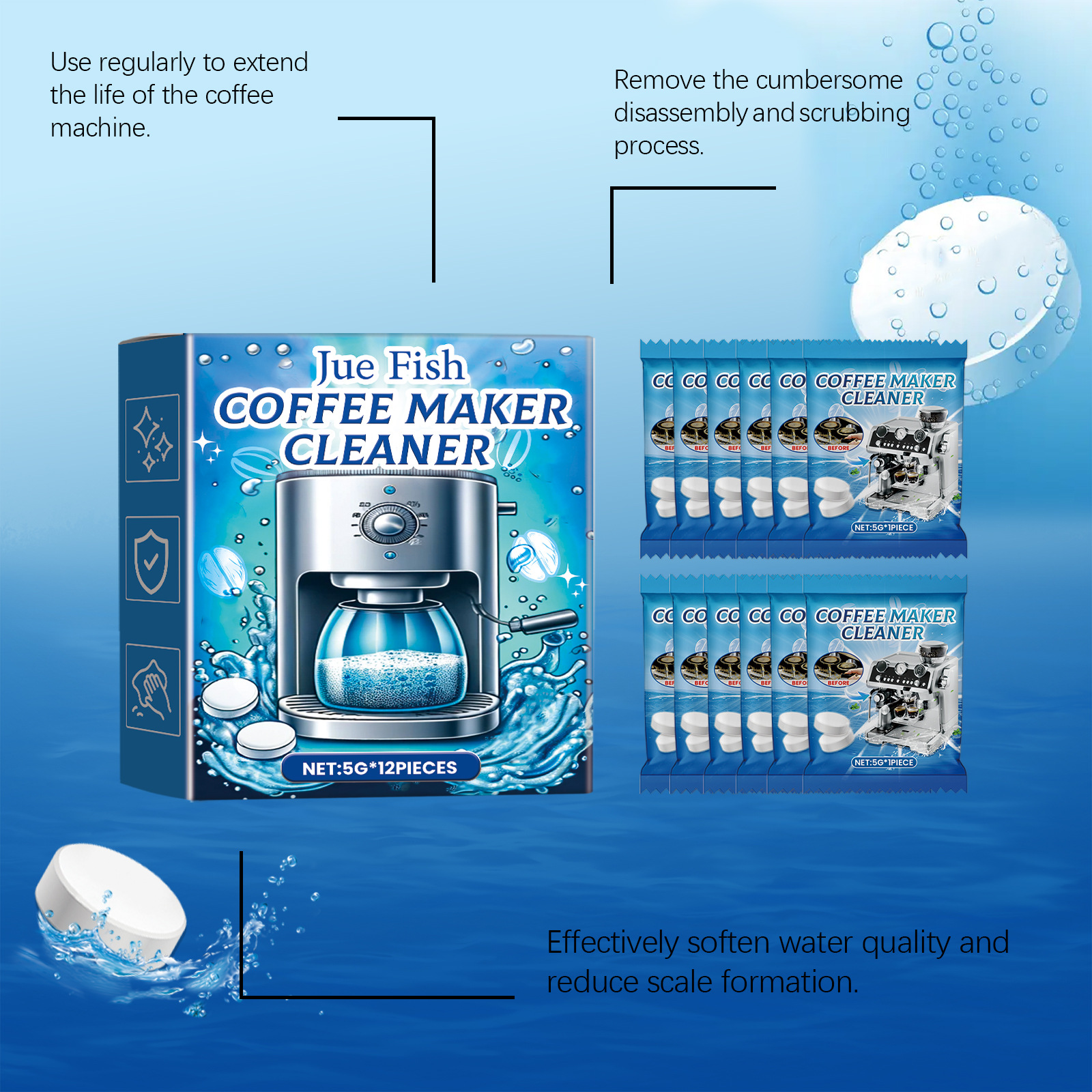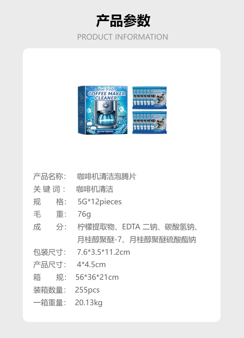 JUE FISH 咖啡机清洁泡腾片 清洁除垢咖啡机滤网污垢保养清洗专供出口 English | 投诉
