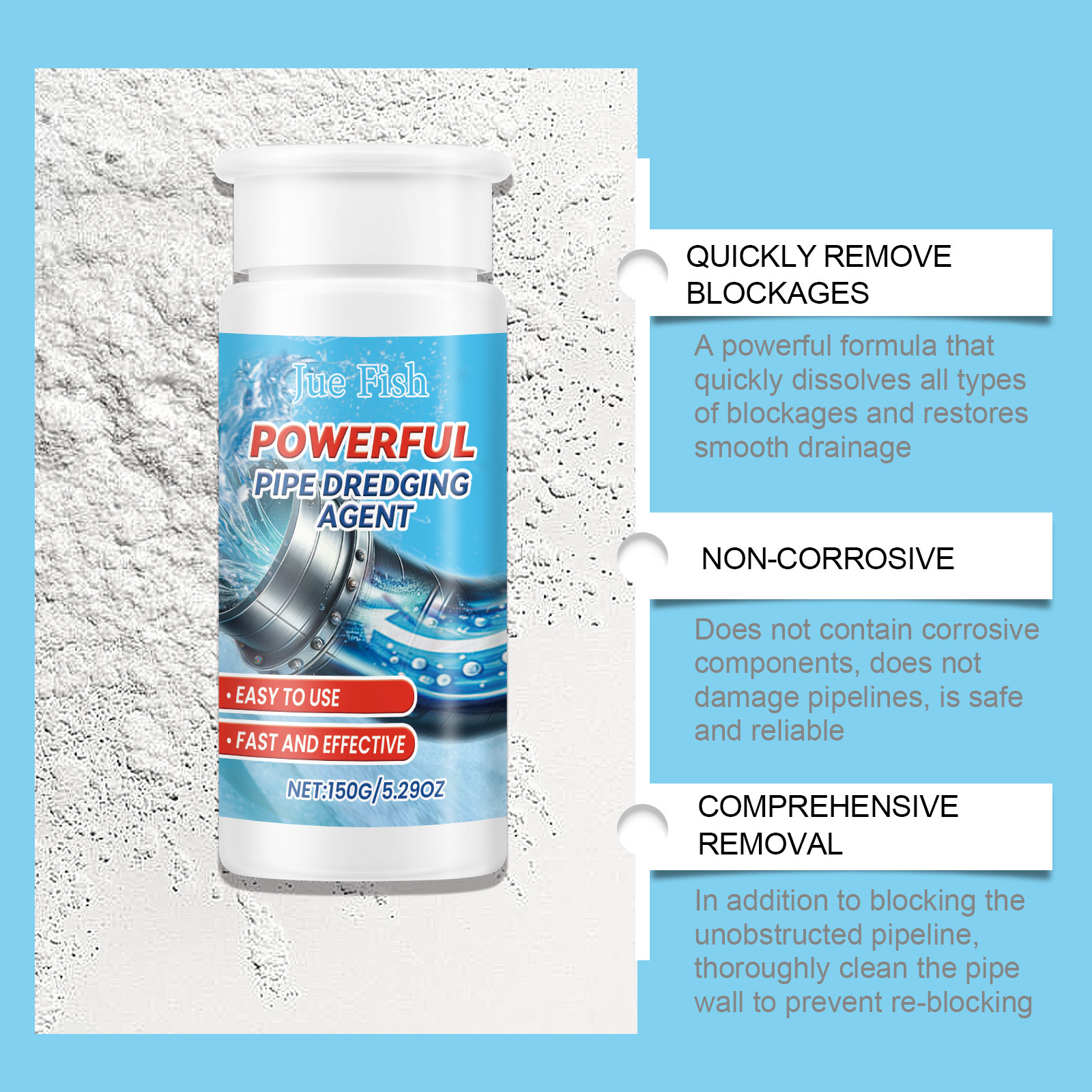 JUE FISH 管道疏通剂 水槽排水管厨房厕所管道快速疏通清洁去污专供出口 English | 投诉
