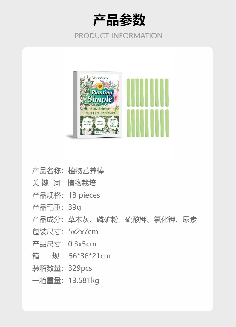 MOONSPRY 植物营养棒 家用花卉绿植盆栽生长栽培植物缓释营养剂专供出口 English | 投诉