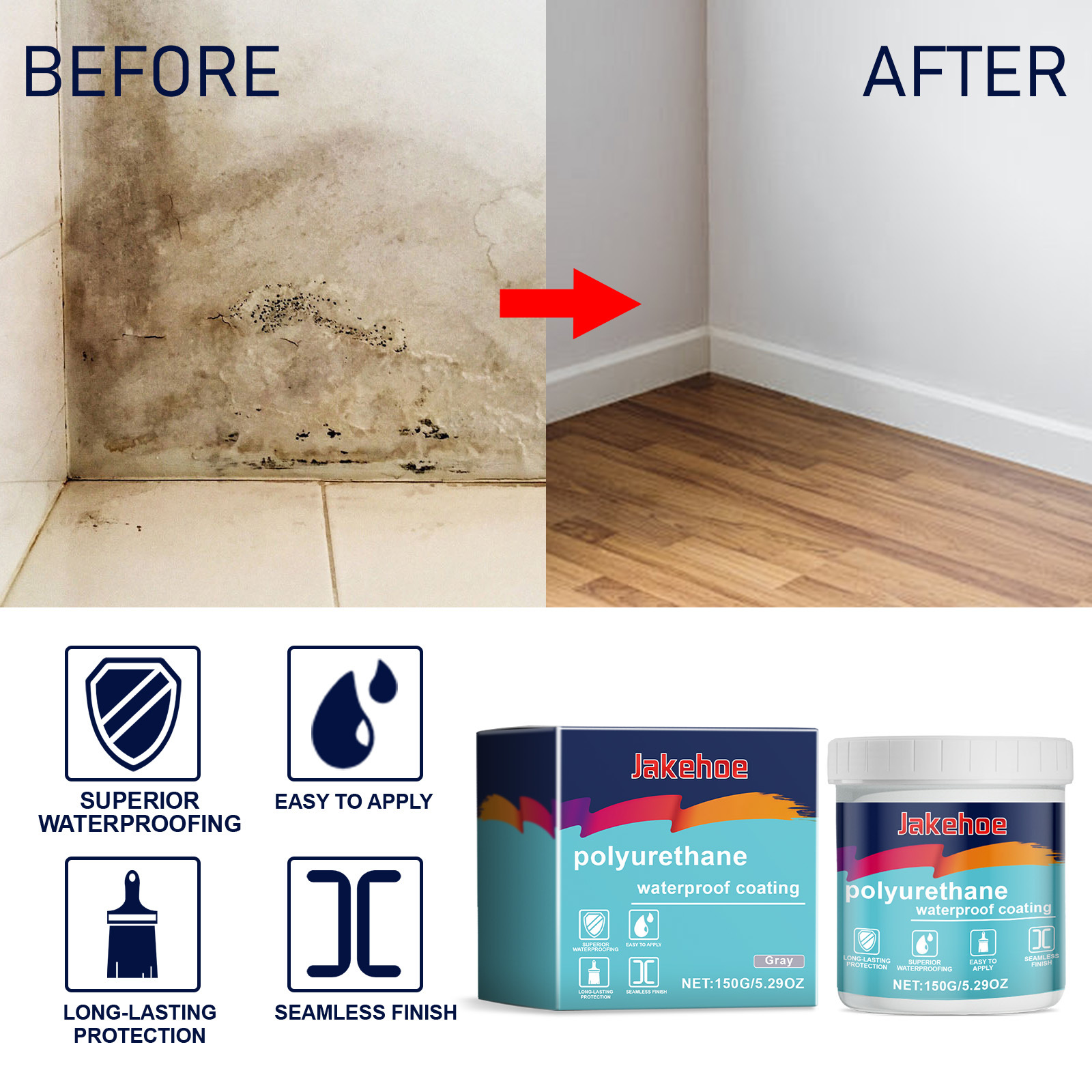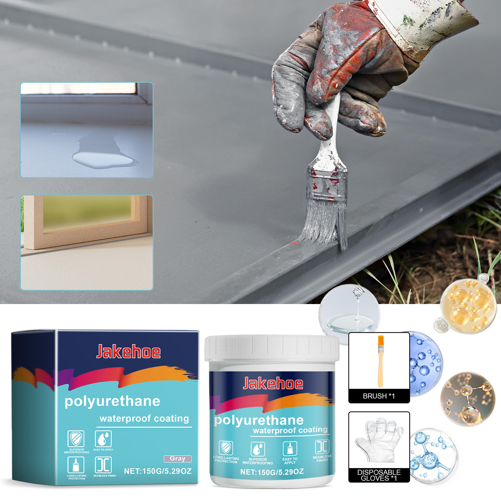 jakehoe 灰色防水补漏涂料 透明防水胶涂料卫生间屋顶门窗防水剂专供出口 English | 投诉
