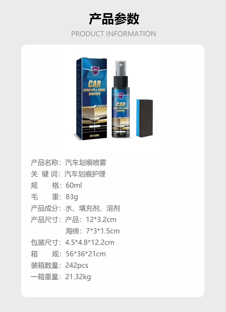 Rayhong 汽车划痕喷雾汽车漆面划痕刮擦翻新抛光补漆清洁护理喷雾专供出口 English | 投诉