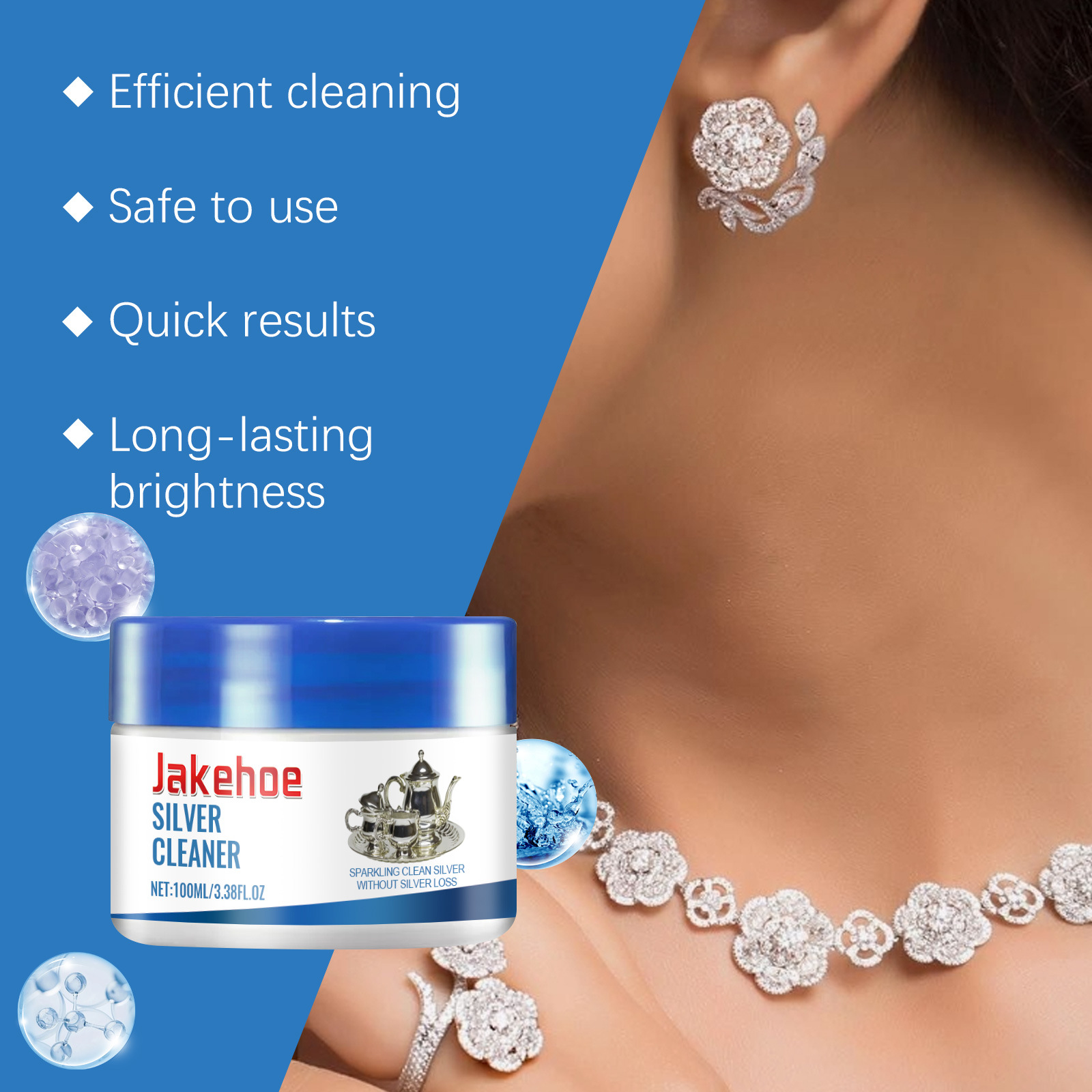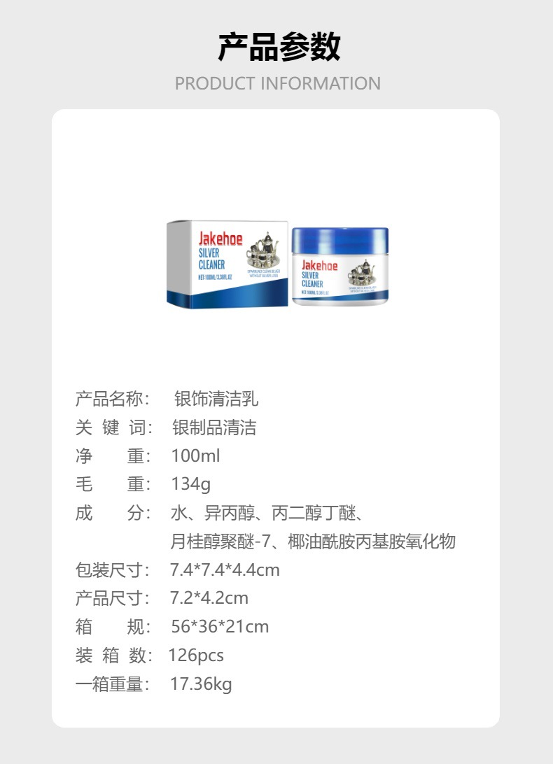 JAKEHOE 银饰清洁乳 银制品黑渍黄渍清洁戒指银杯项链银饰清洁剂专供出口 English | 投诉