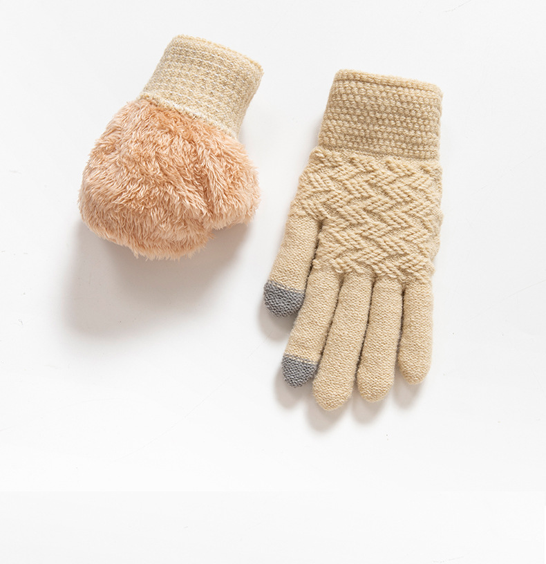 跨境亚马逊手套双层加绒加厚北极绒运动冬季针织触屏骑行保暖手套 投诉