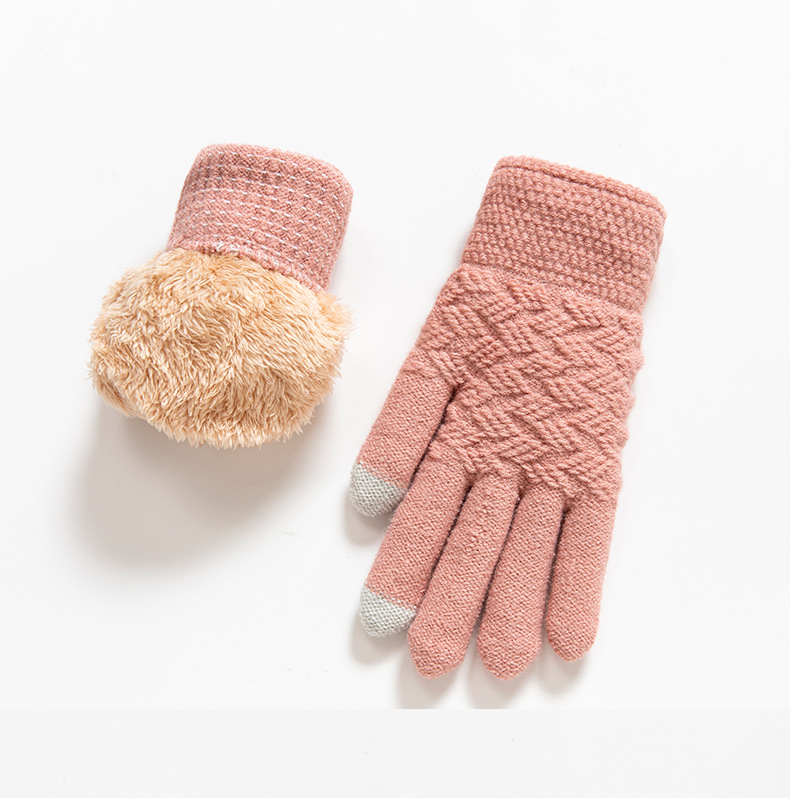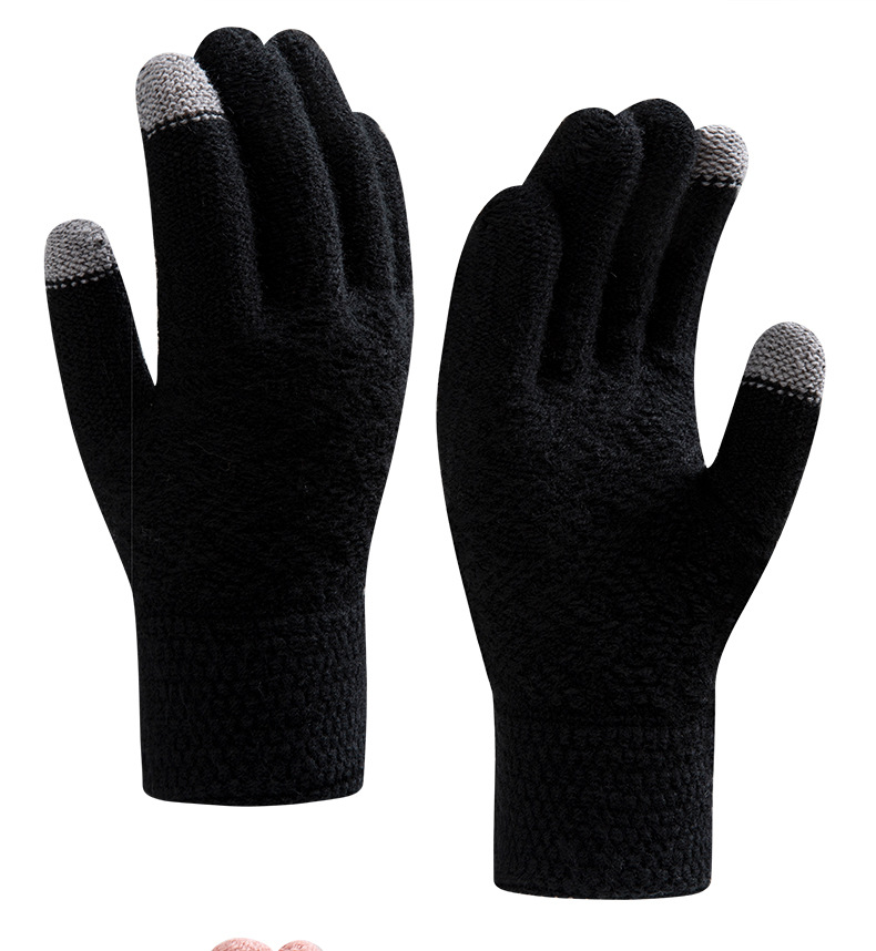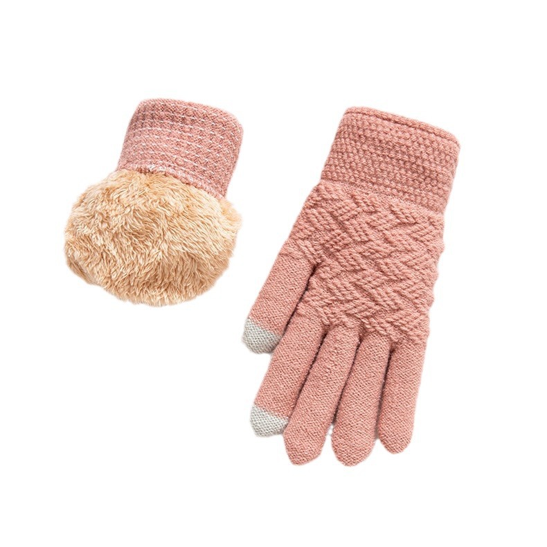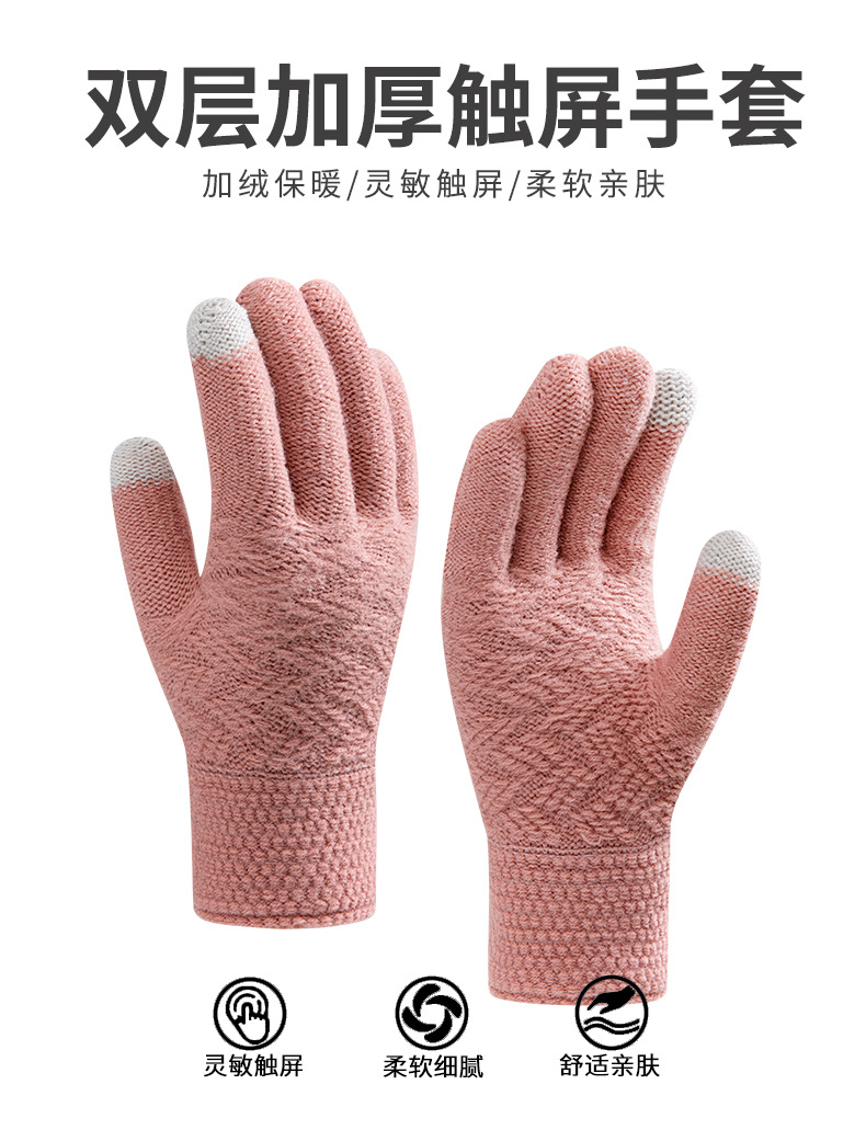 跨境亚马逊手套双层加绒加厚北极绒运动冬季针织触屏骑行保暖手套