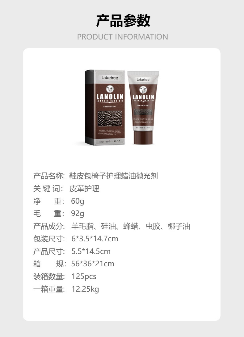 Jakehoe 鞋皮包椅子护理蜡油抛光剂棕色皮椅沙发真皮鞋包增亮护理专供出口 English | 投诉