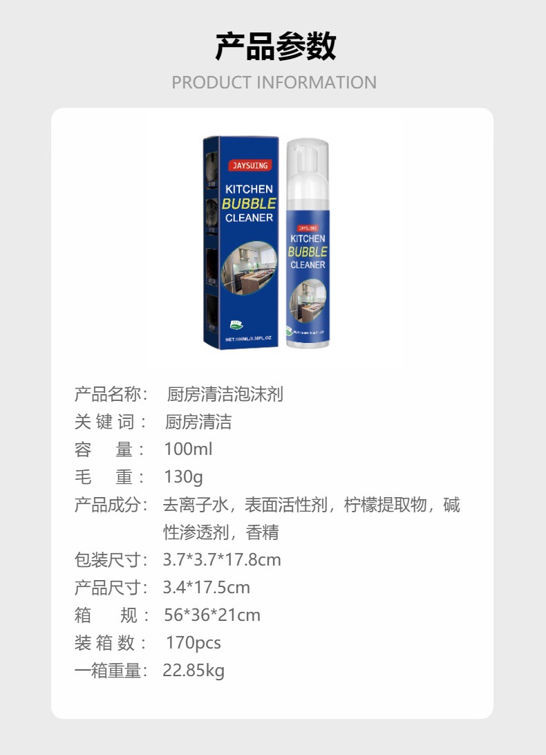 Jaysuing 厨房清洁泡沫剂 厨房灶台重油污清洁厨具去污渍污垢除锈专供出口 English | 投诉