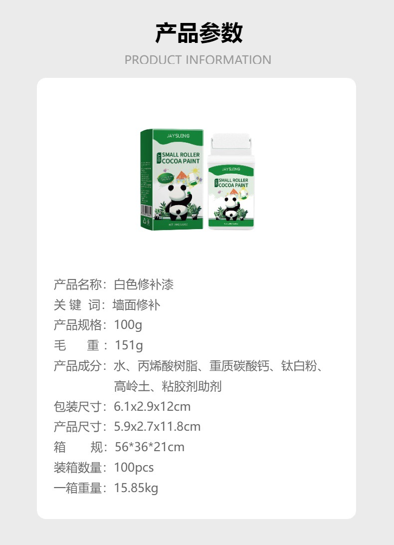 jaysuing 白色修补漆 家用墙面补墙膏涂鸦霉斑遮盖修补翻新补墙漆专供出口 English | 投诉
