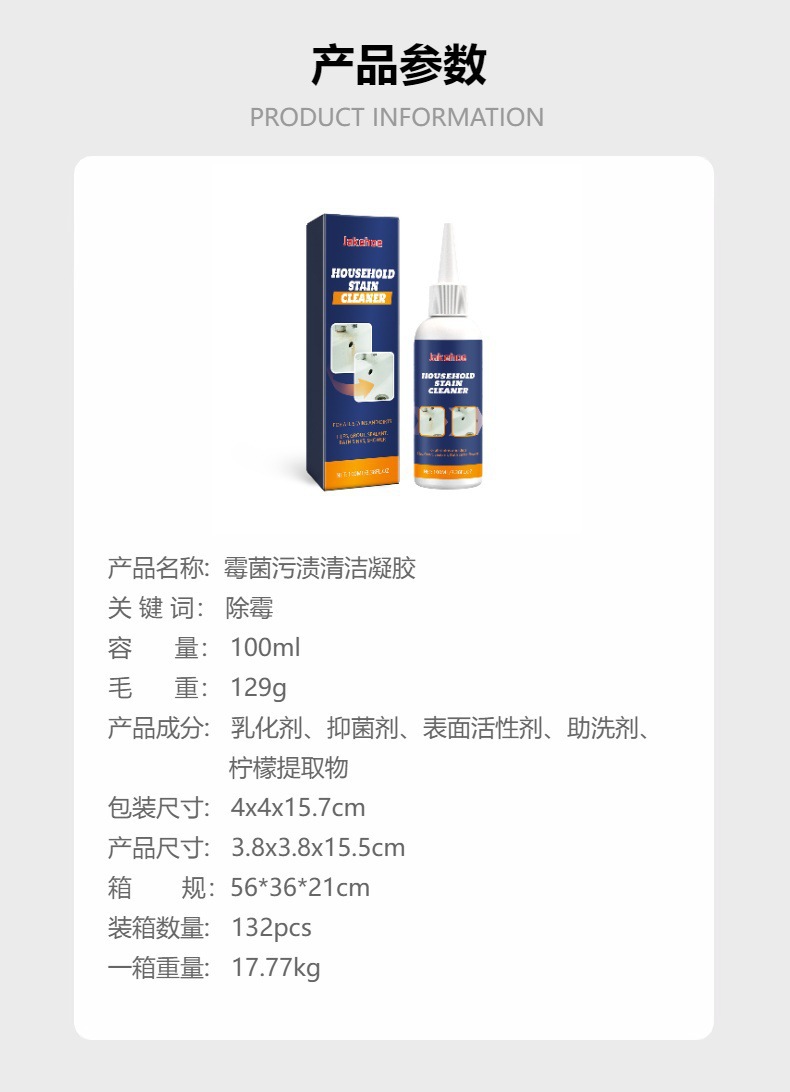 Jakehoe 霉菌污渍清洁凝胶 家用门窗墙面瓷砖缝隙除霉去污清洁剂专供出口 English | 投诉