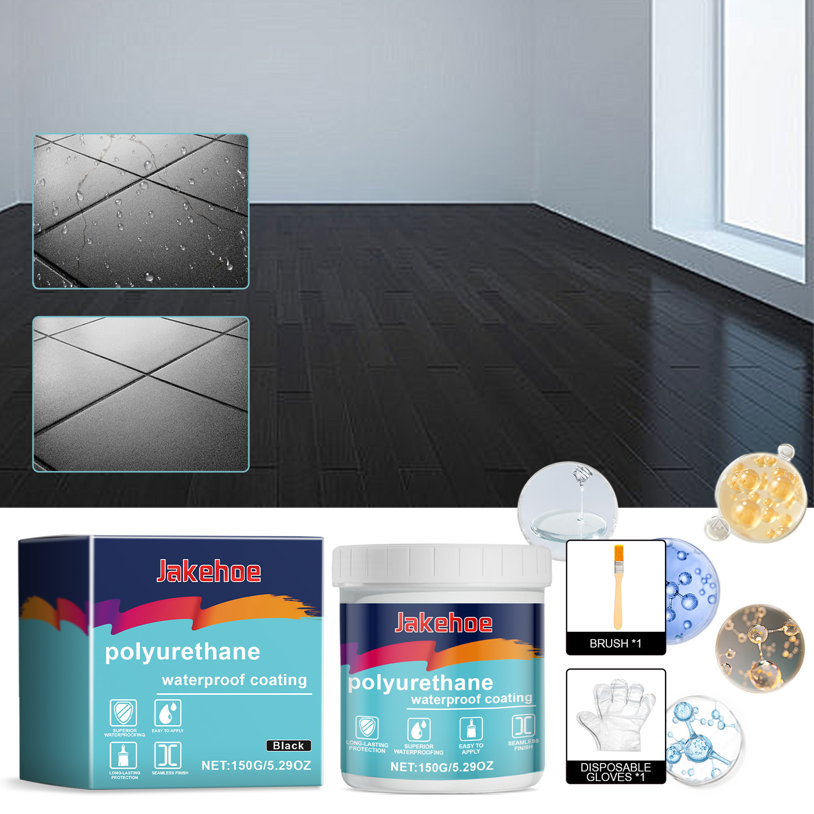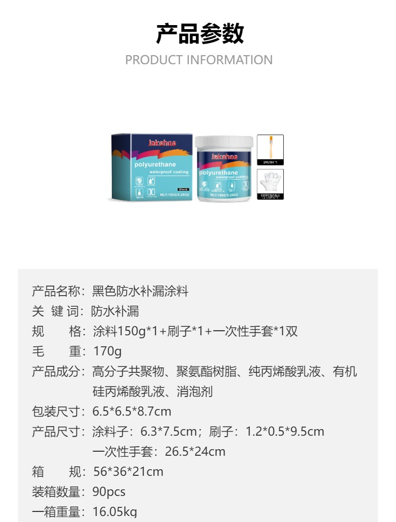 Jakehoe黑色防水补漏涂料 窗台屋顶墙壁裂缝防水补漏聚氨酯防水胶专供出口 English | 投诉