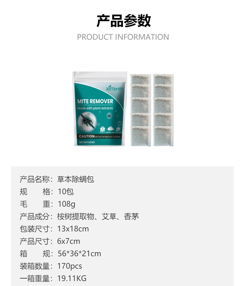 Ximonth 草本除螨包 旅行户外露营家居床上用品衣物草本驱蚊除螨专供出口 English | 投诉