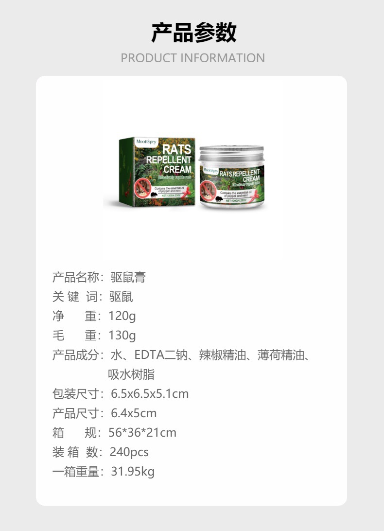 MoonSpry 驱鼠膏 家用室外菜园防护捕鼠避鼠膏植物精华老鼠驱赶膏专供出口 English | 投诉