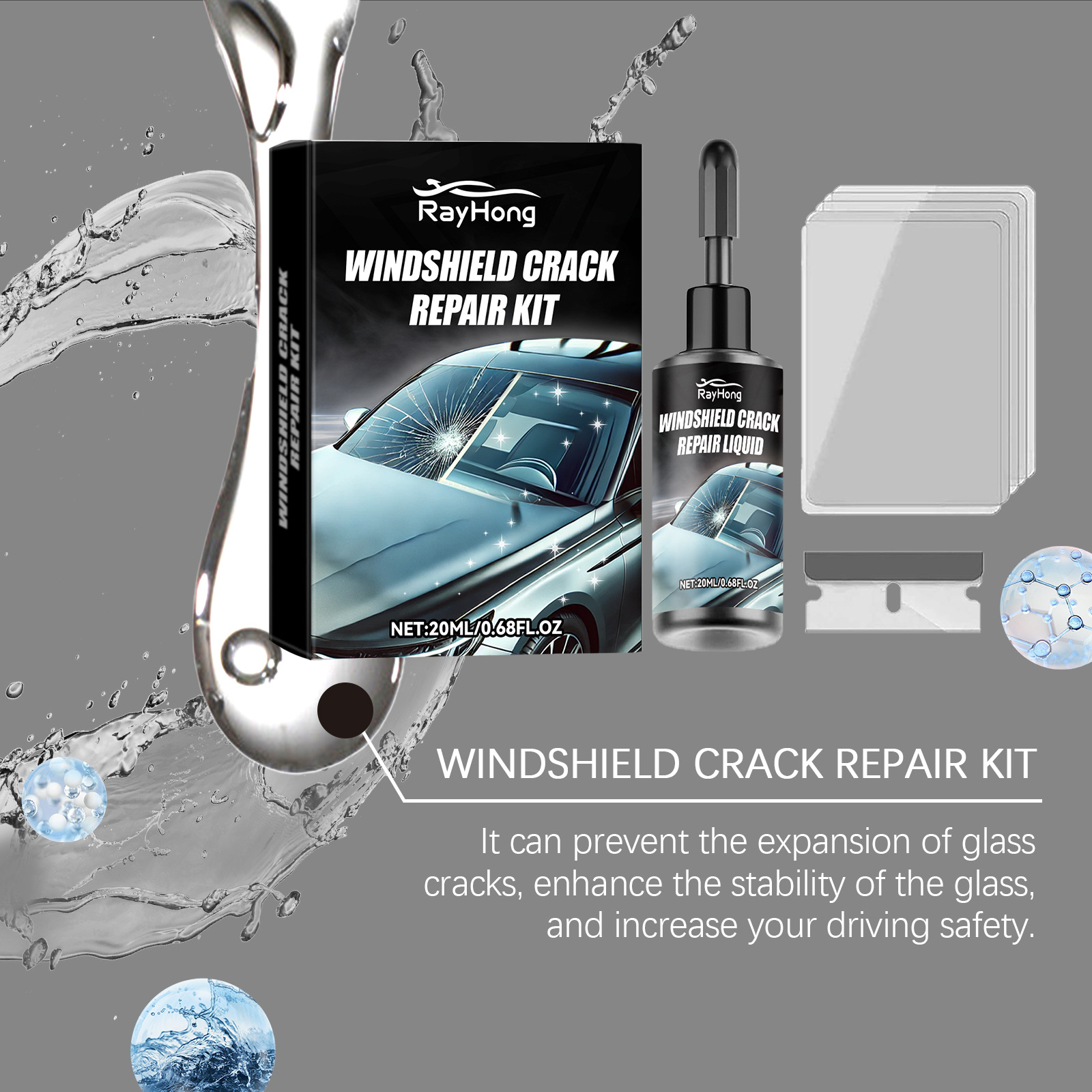 Rayhong挡风玻璃防风裂纹修护套件 清晰视野出行翻新修护套件专供出口 English | 投诉