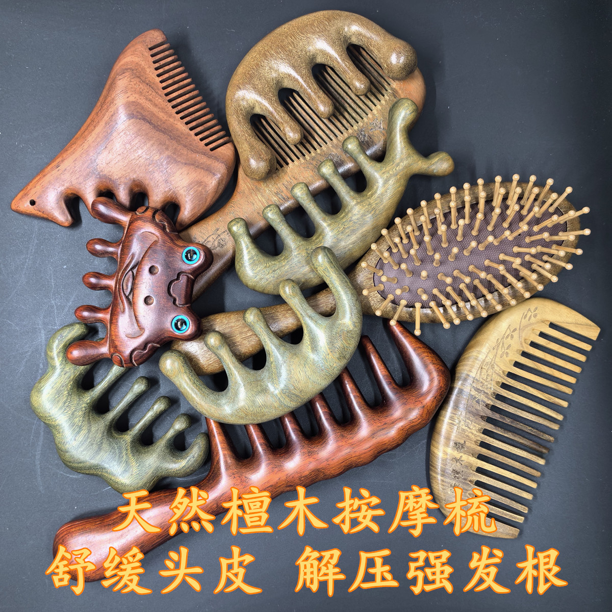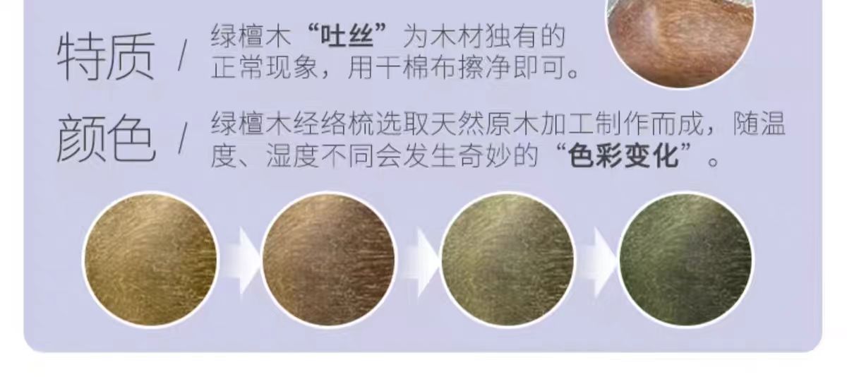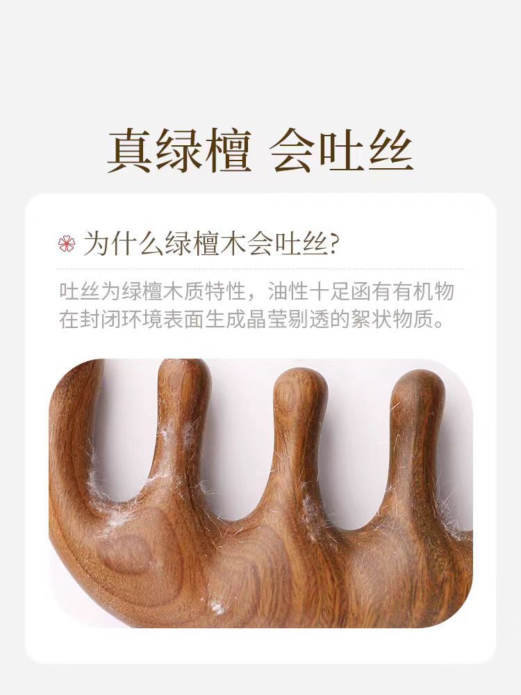 绿檀材质每把梳子都会有独特的天然纹理~有檀香,会吐丝,会变色