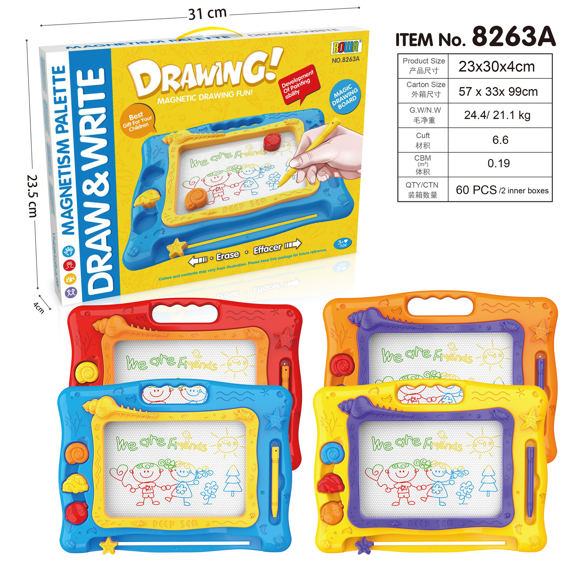 8263A:彩色中写字板(4款混装)60盒/箱