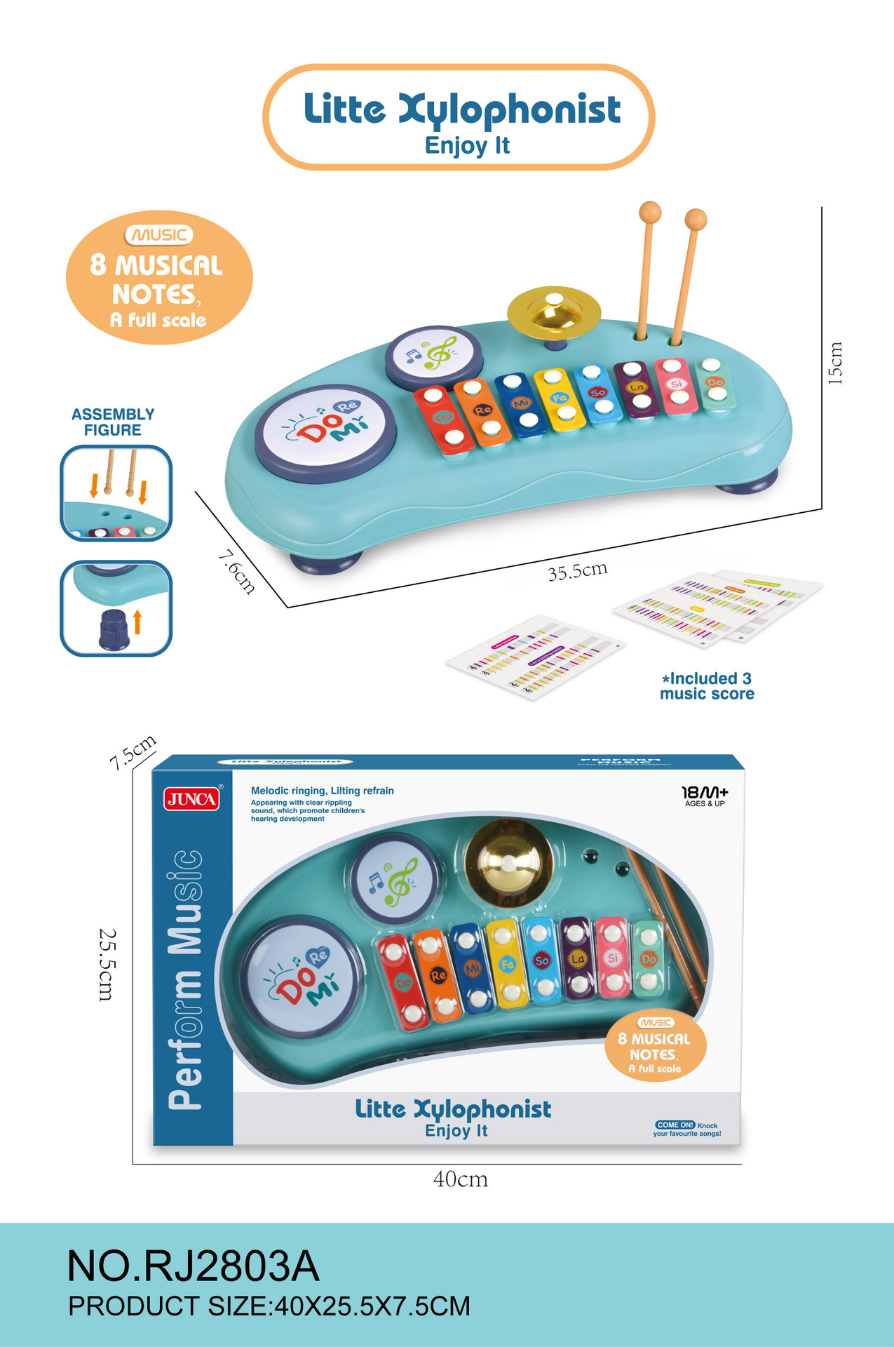 | RJ2803A | 敲琴 | 开窗盒 | 36 | 35.5*7.6*15 | 81*41.5*93 | 2 | 21 | 23 | 海雾蓝 | 不带电 |