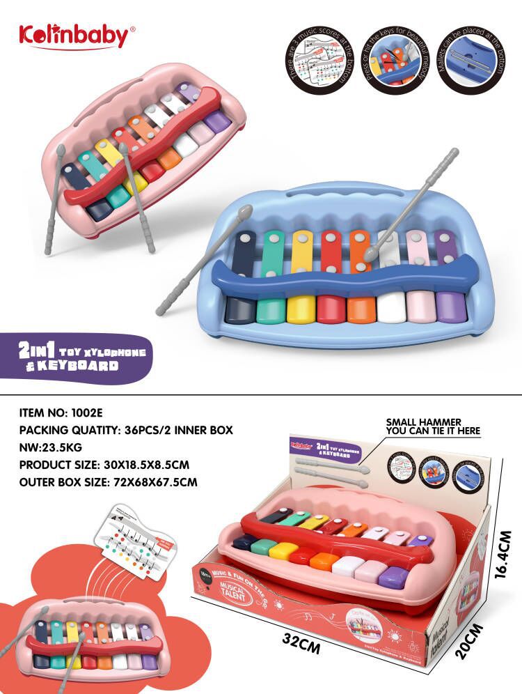 | 1002E | 多功能敲琴 | 展示盒 | 3 | 32*20*16.4 | 98.5 | 63.5 | 47 | 36pcs/2 | 25.5 | 23.5 | PP+金属 |