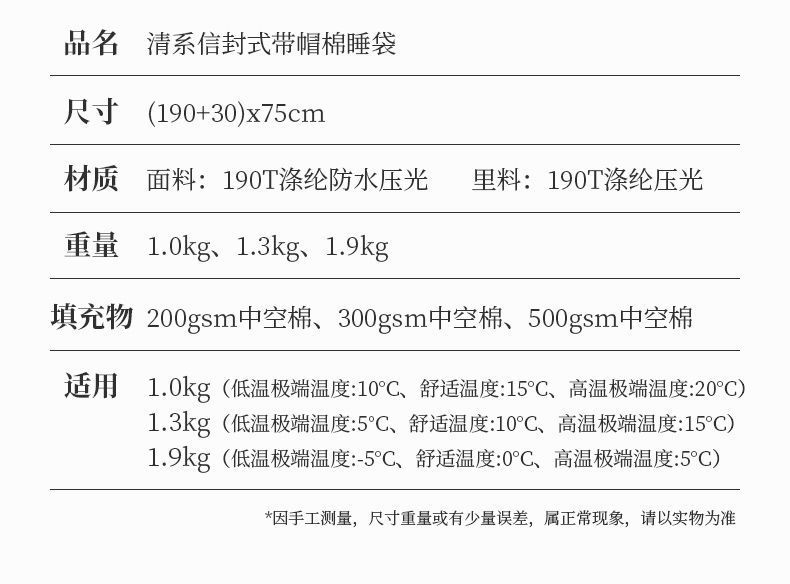 | 带帽信封式棉睡袋【1.9KG-右】 | ¥10188 | 99999件可售 |