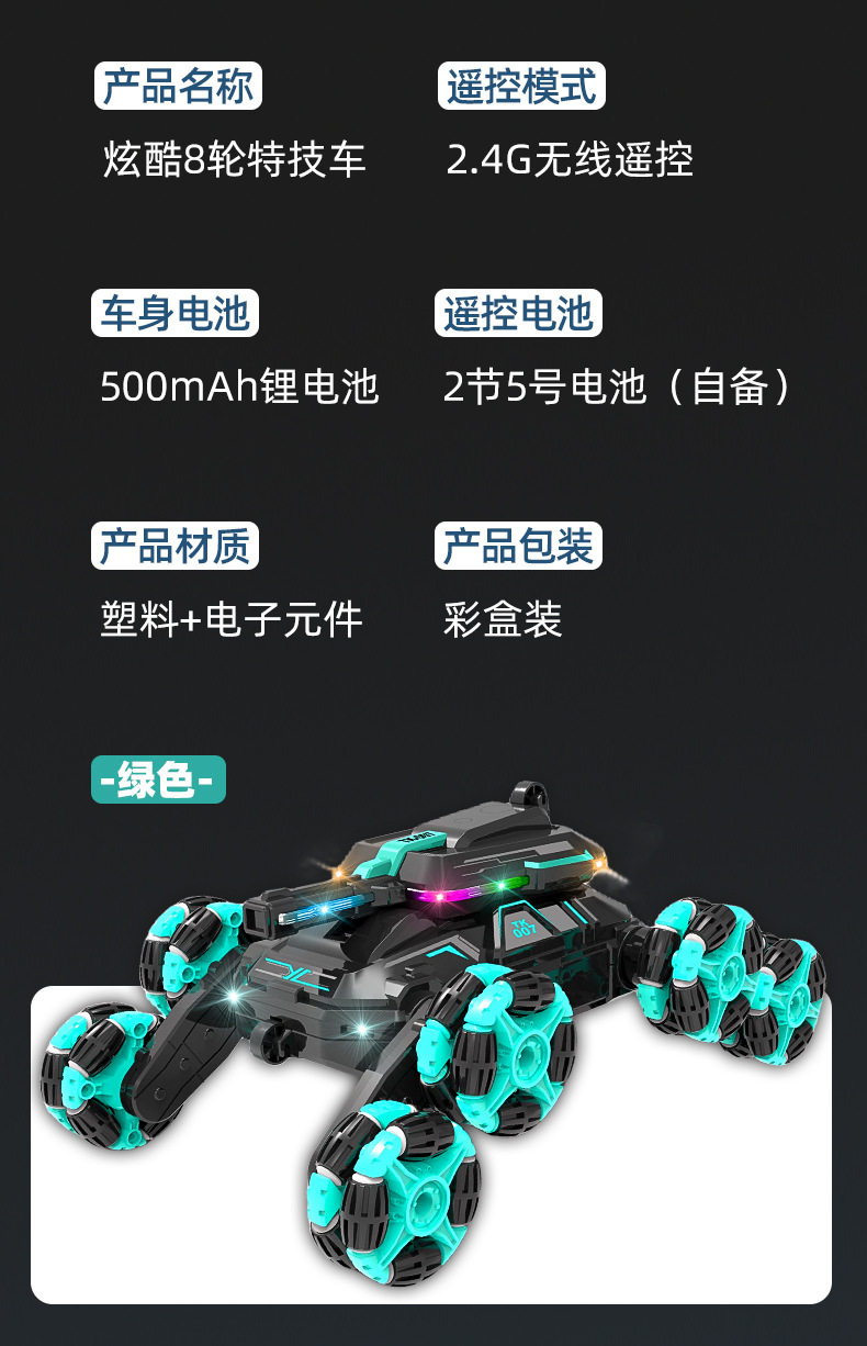 品名: 2.4G八轮特技遥控车双遥控版