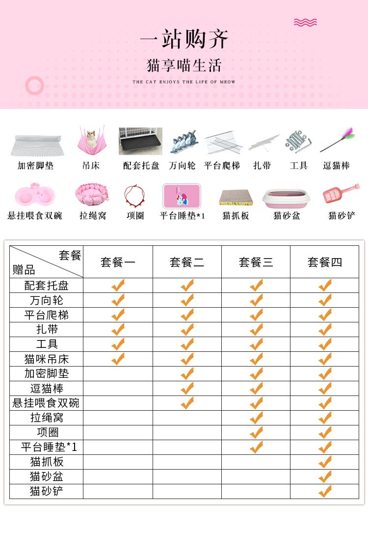 | 套餐三(送12件-含前两套+猫窝+平台垫等) | ¥19764 | 99999件可售 |