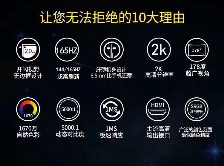 | 新款24寸黑直无边1K165HZ | ¥49959 | 99999件可售 |
