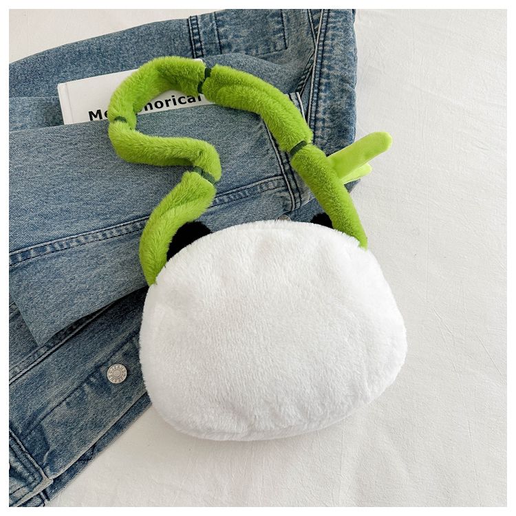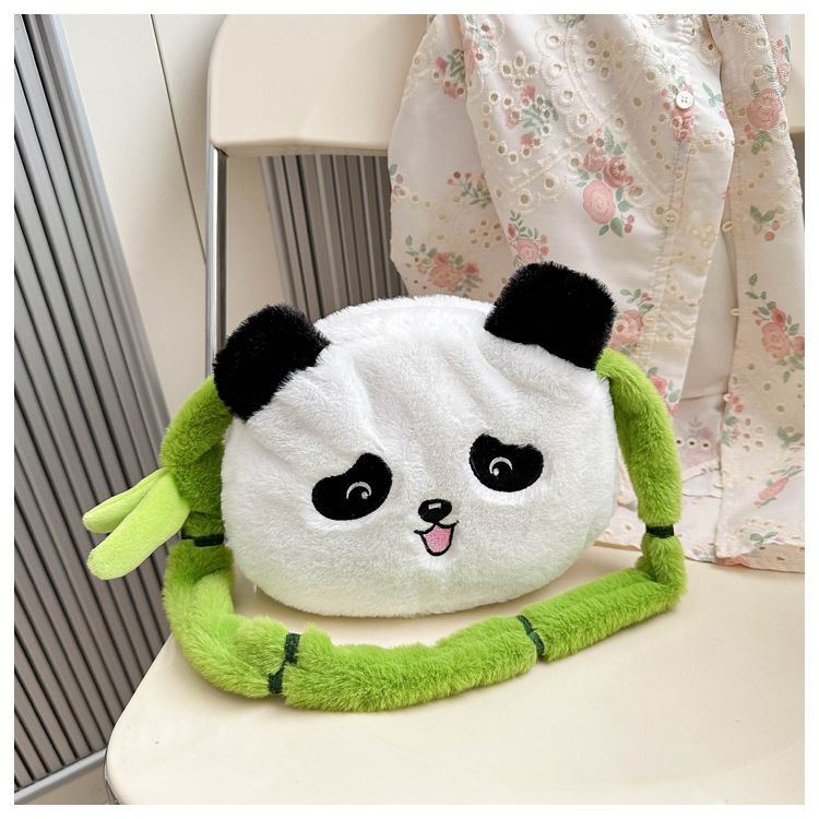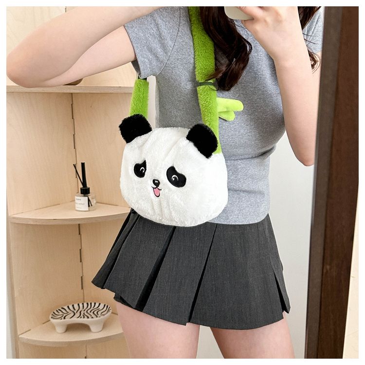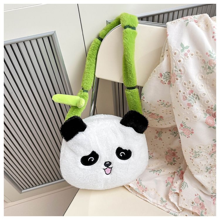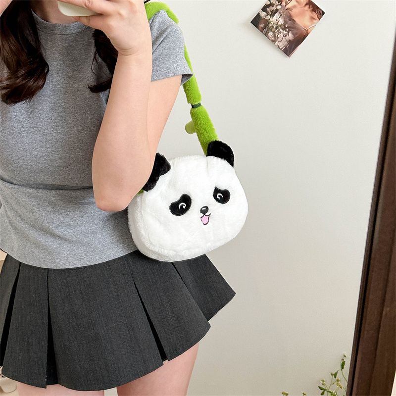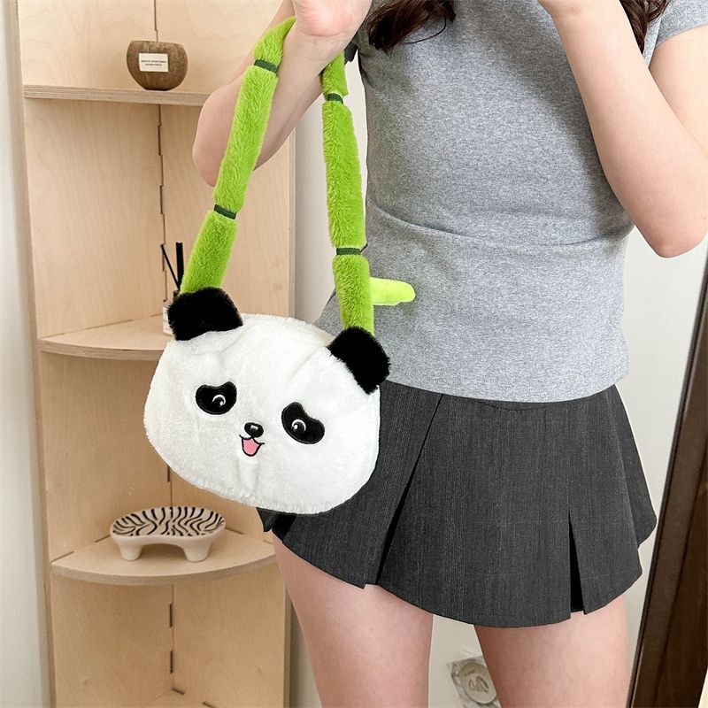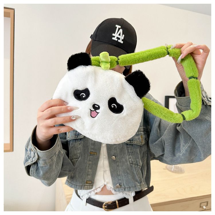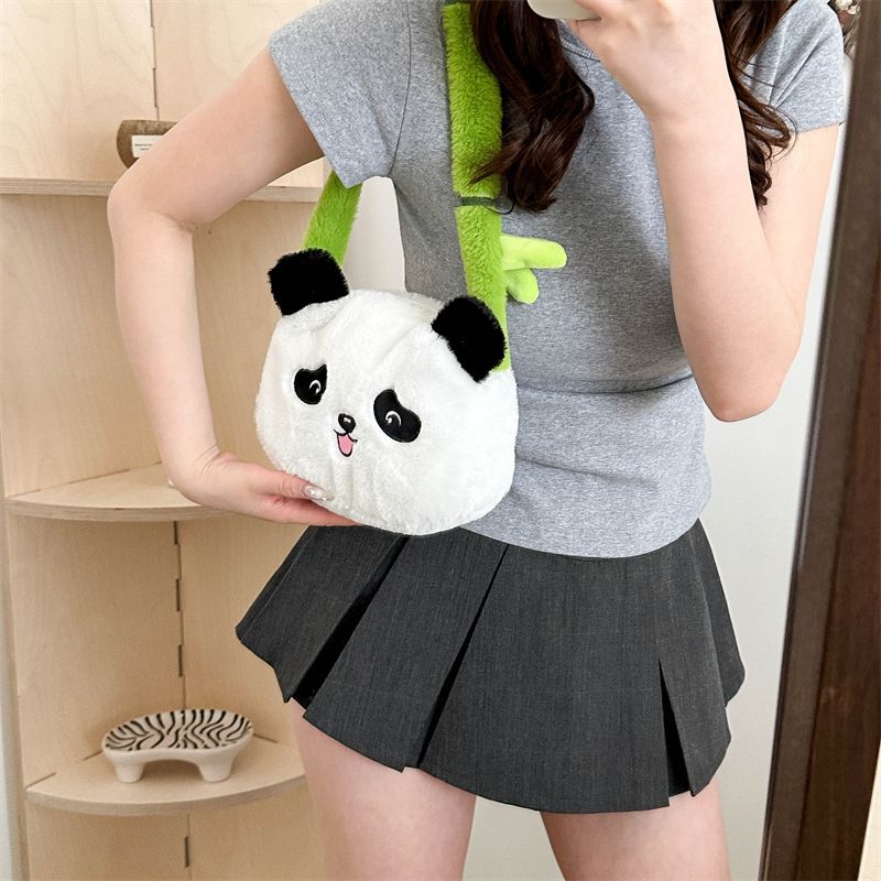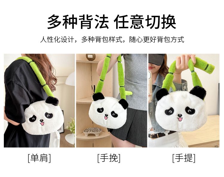 新款熊猫竹子单肩斜挎包毛绒高颜值小清新慵懒风便携式