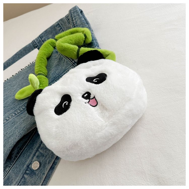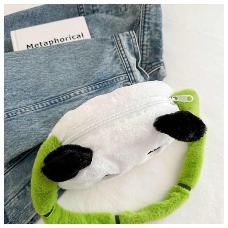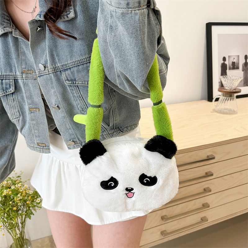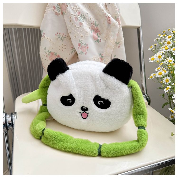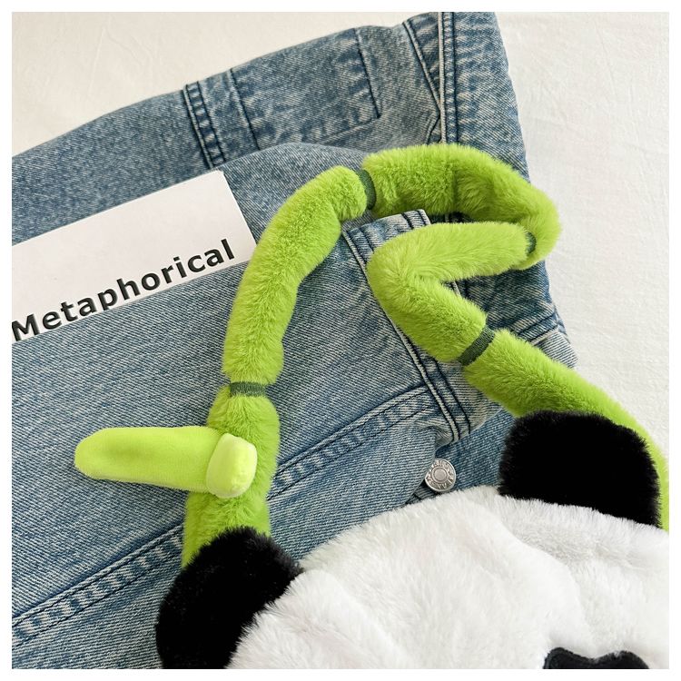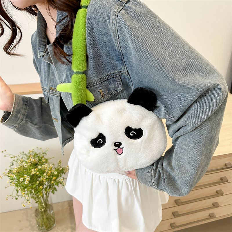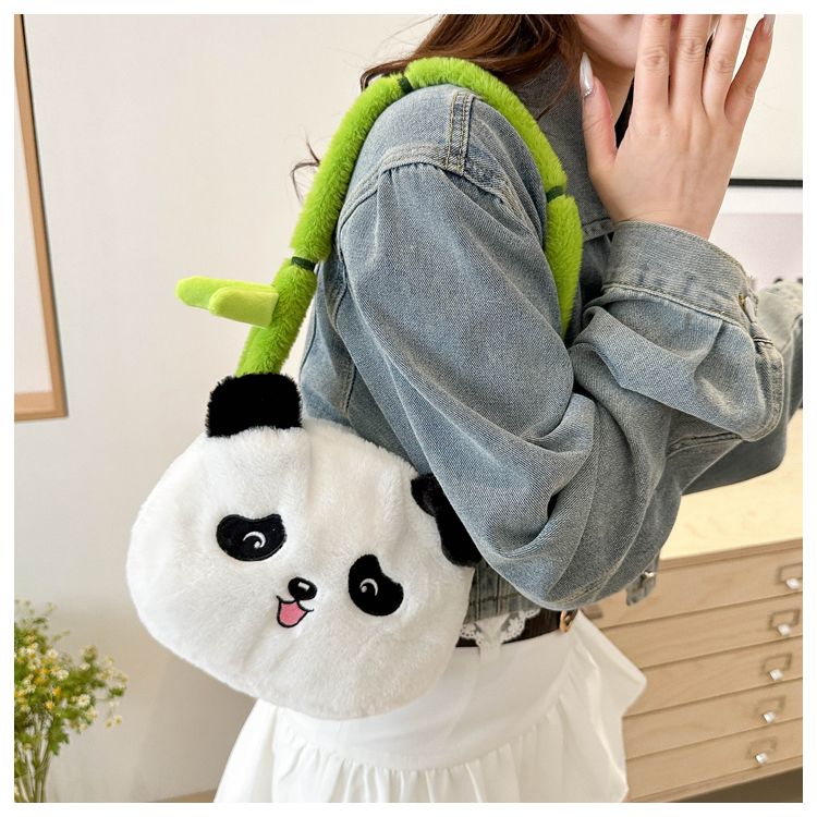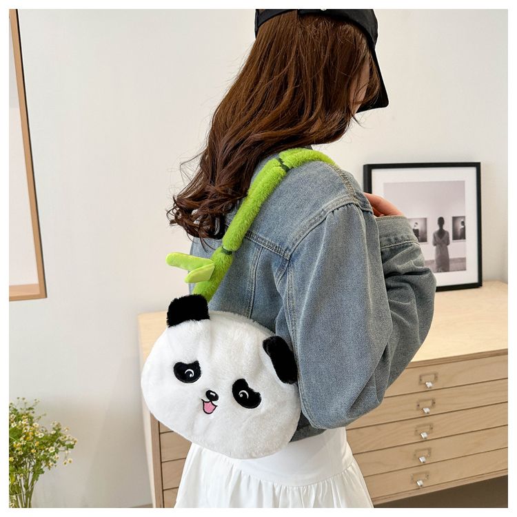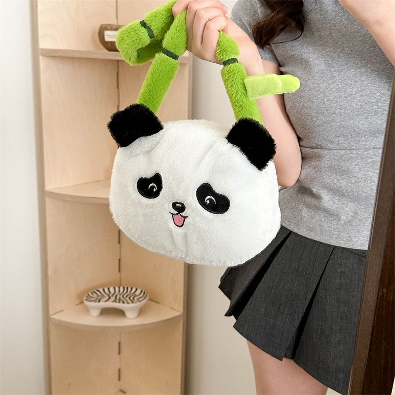 新款熊猫竹子单肩斜挎包毛绒高颜值小清新慵懒风便携式