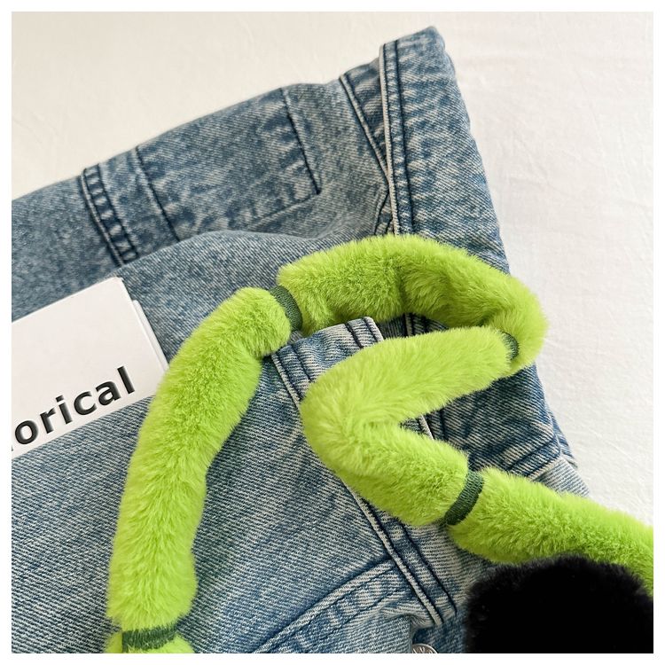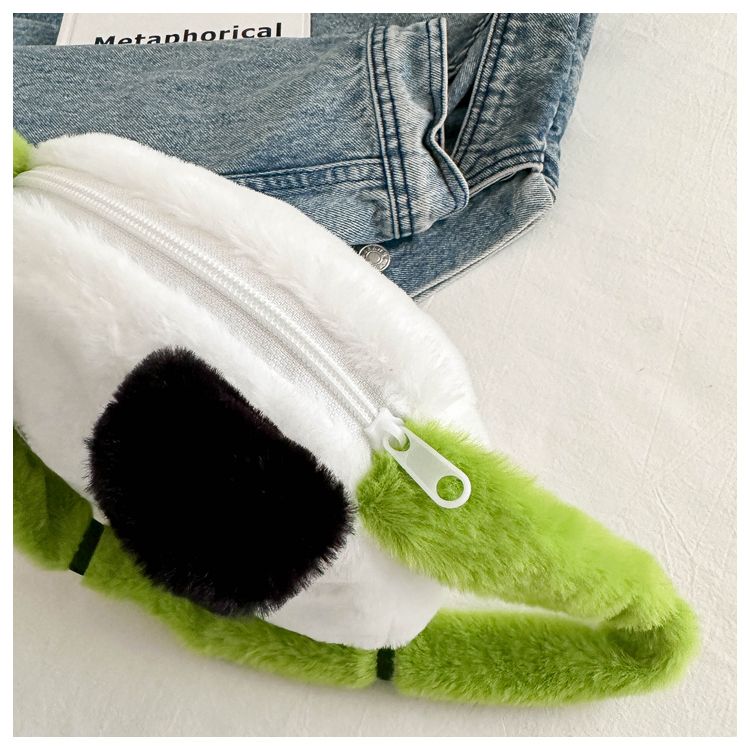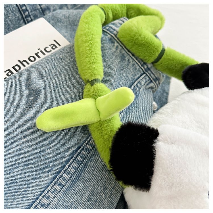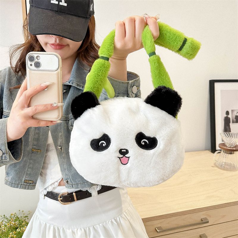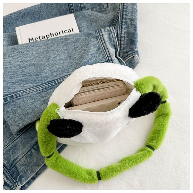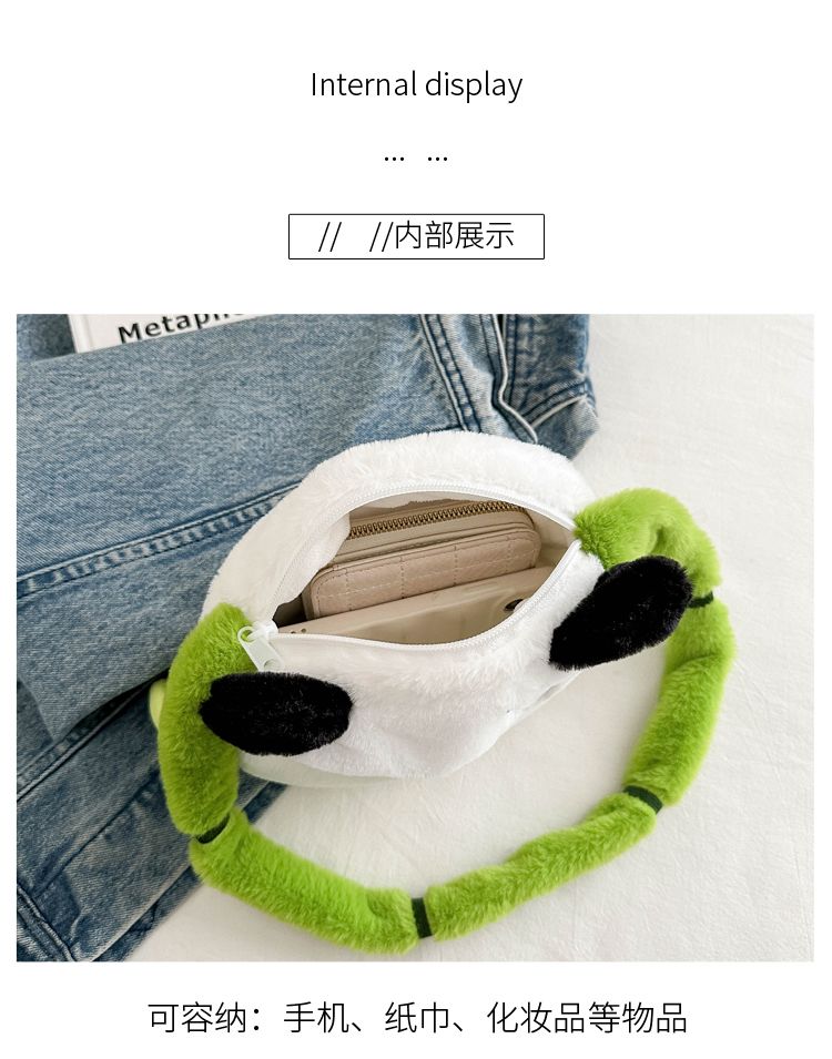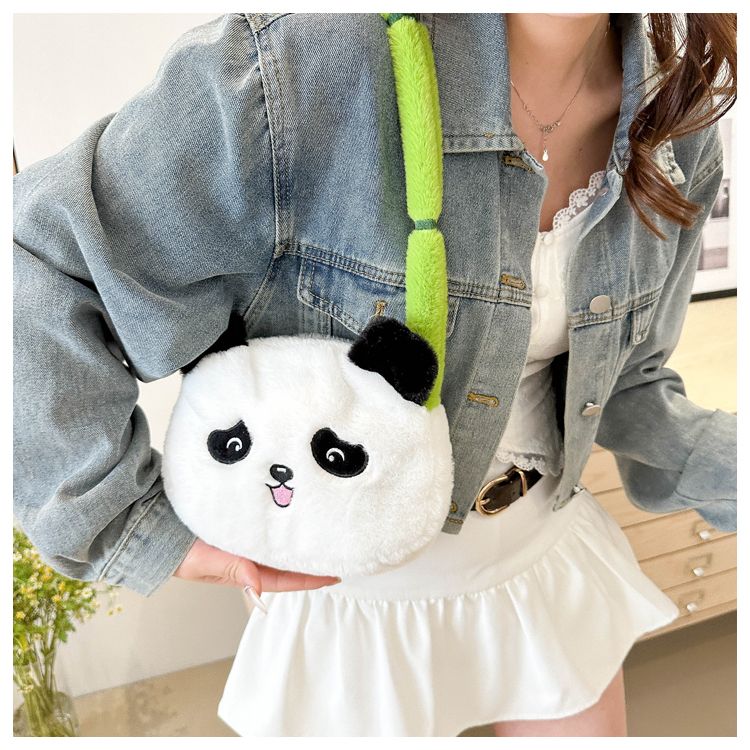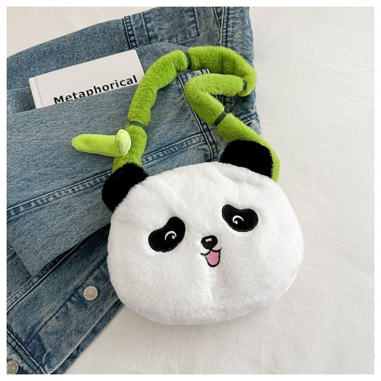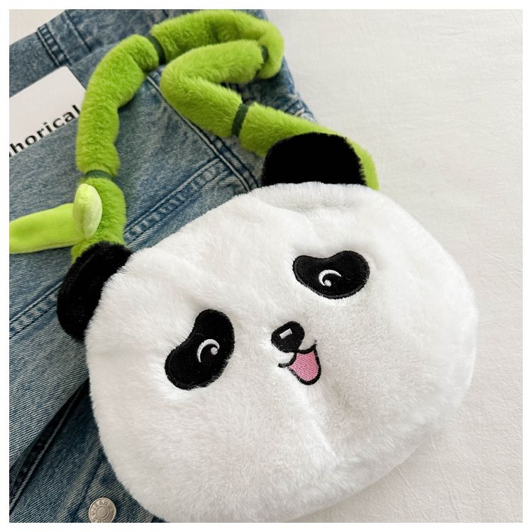 新款熊猫竹子单肩斜挎包毛绒高颜值小清新慵懒风便携式