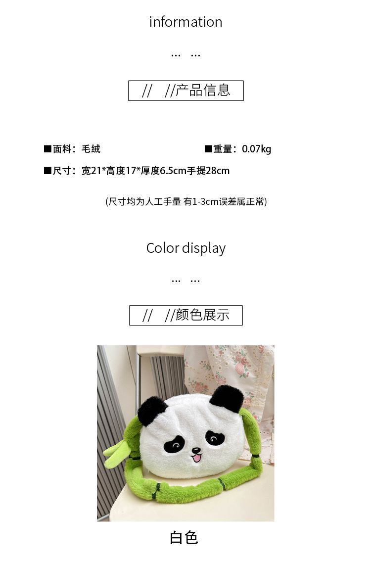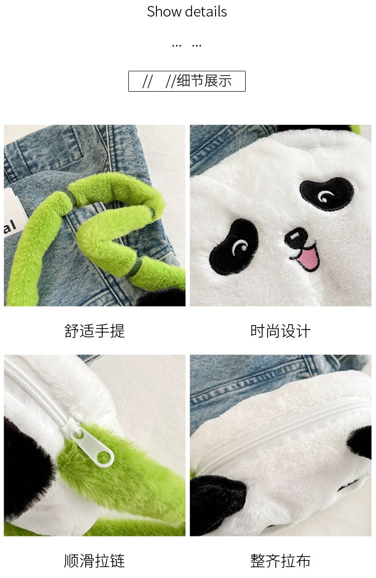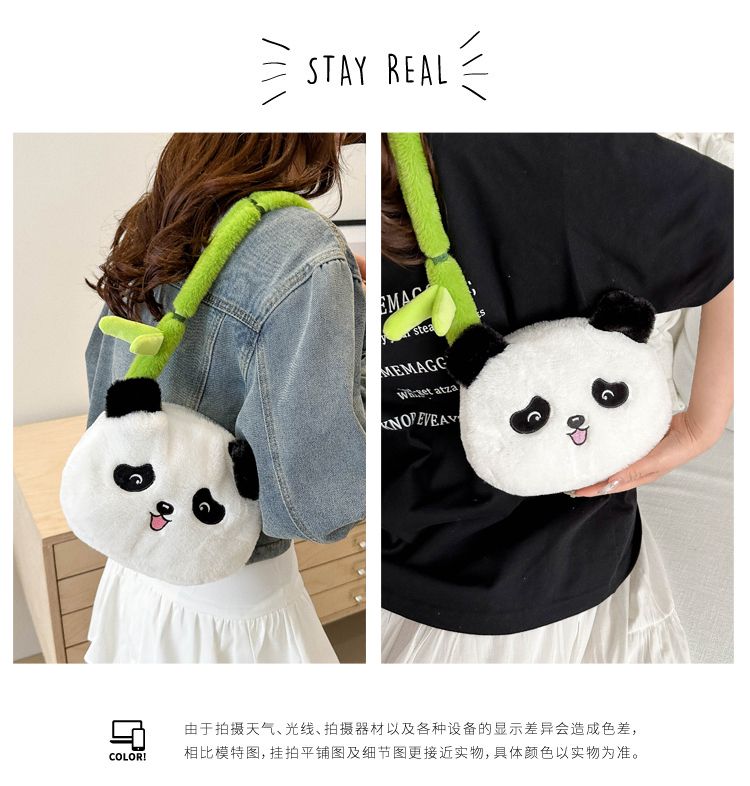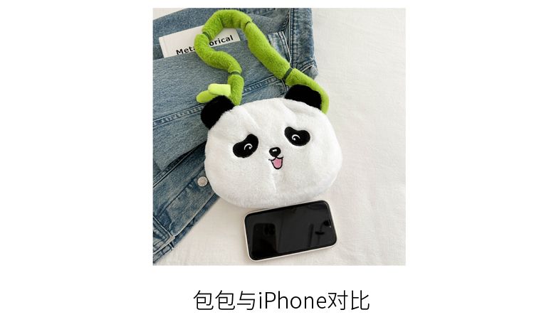 新款熊猫竹子单肩斜挎包毛绒高颜值小清新慵懒风便携式 投诉