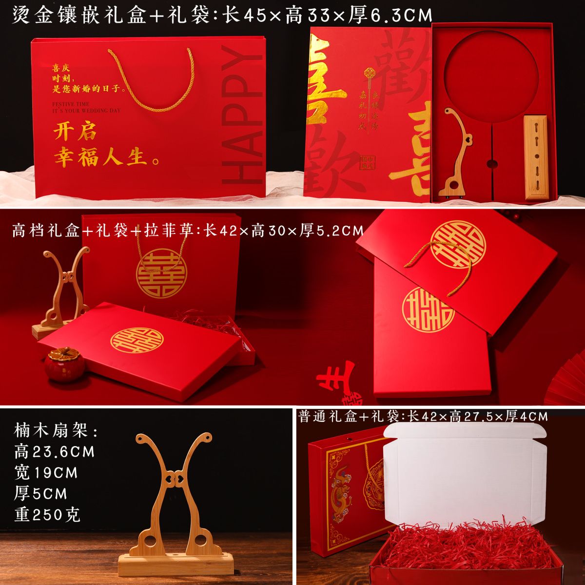 | 喜扇+楠竹扇架+拉菲草礼盒 | ¥15087 | 99999件可售 |
