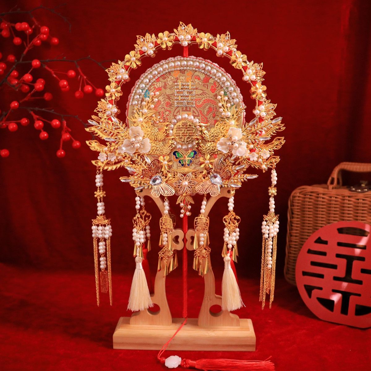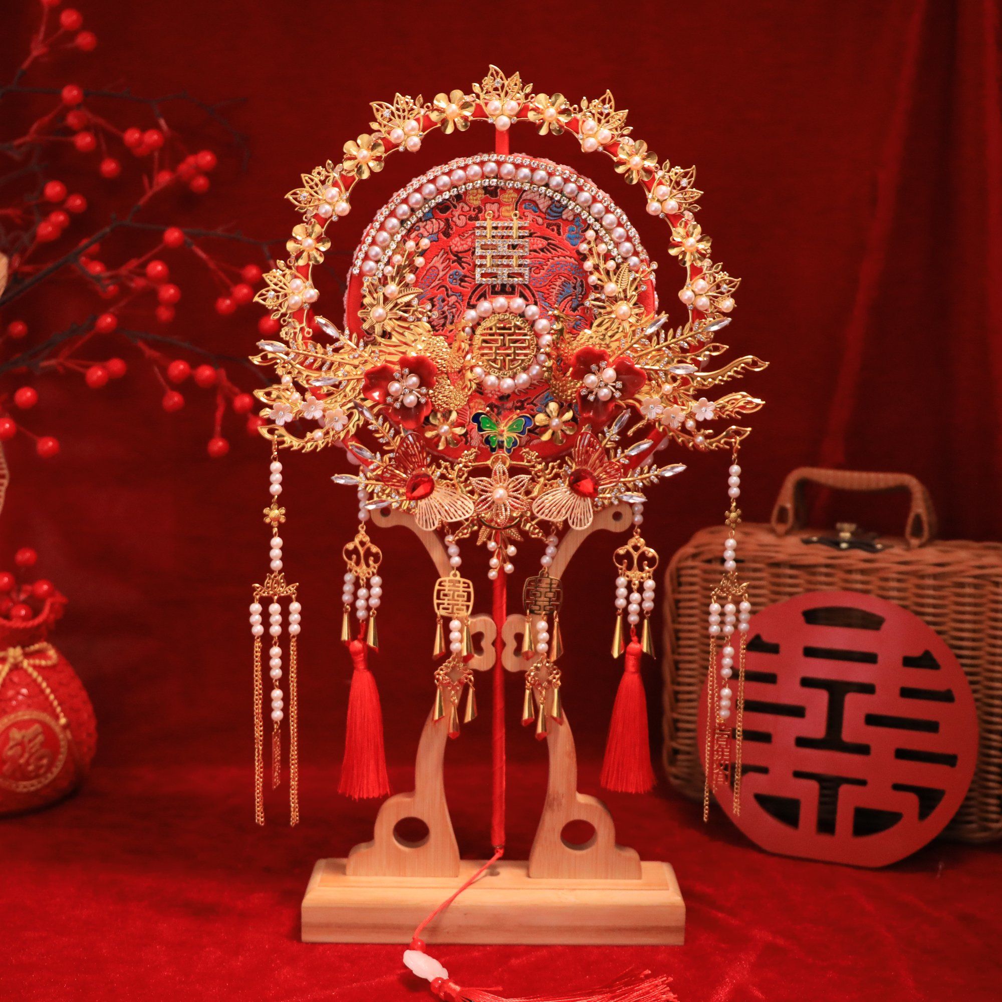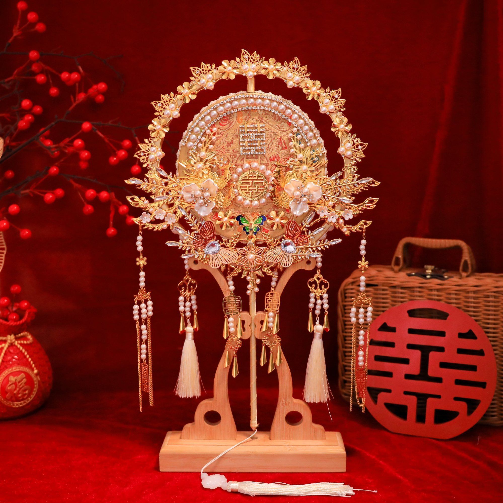 | 喜扇+楠竹扇架+烫金镶扇礼盒 | ¥12000 | 99999件可售 |