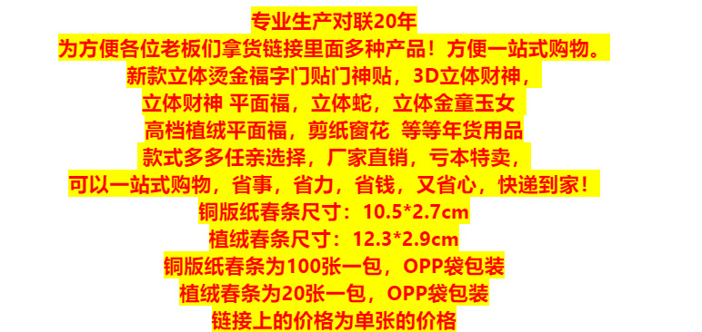 | 【11】植绒春条 开门大吉 | ¥31 | 898892张可售 |