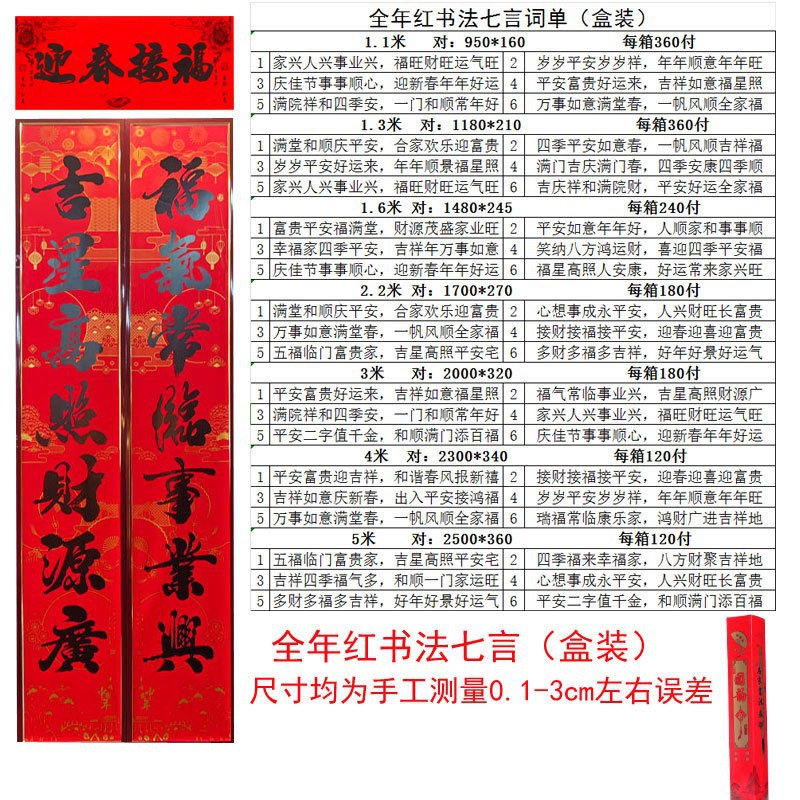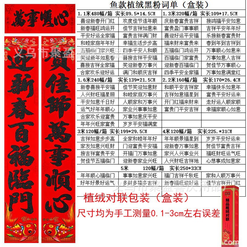 对联都是独立包装的,植绒对联和书法都是盒装的,款式随机发