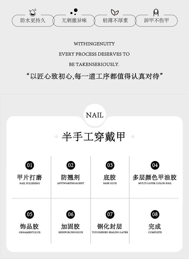 产地: 中国大陆 产品类型: 硬甲 适用部位: 手指甲 适用人群: 通用 风格: 纯欲风 甲型: 长水滴 适用肤质: 多种肤质 制作工艺: 全手工 包装种类: 普通盒装 重量: 0.5 kg/件