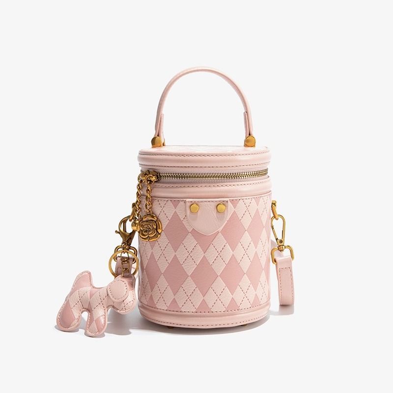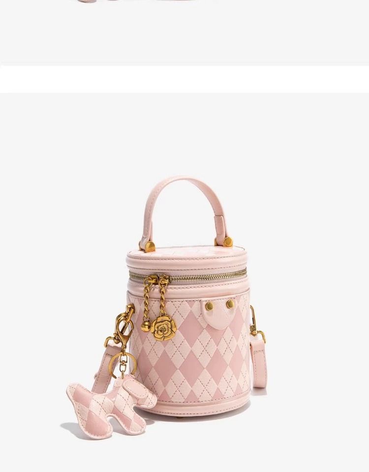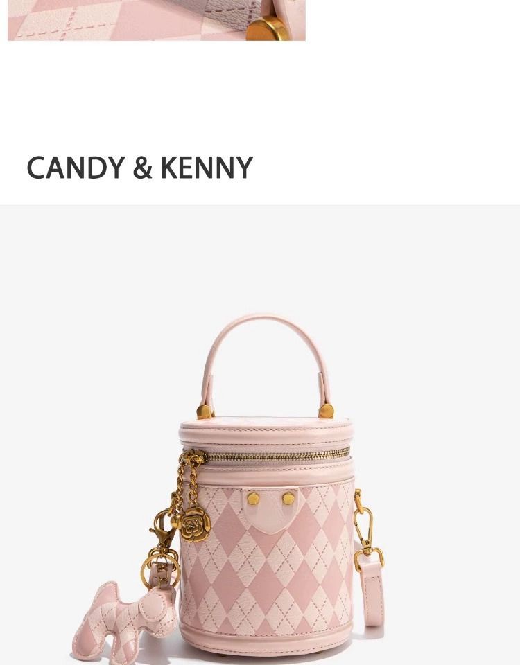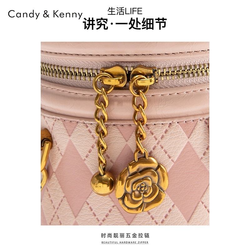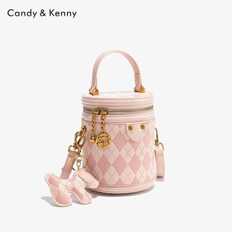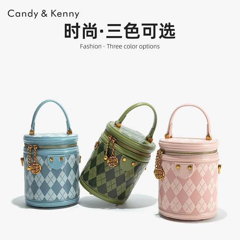 官网Candy&Kenny时尚菱格水桶包女2024新款小众设计高级感圆