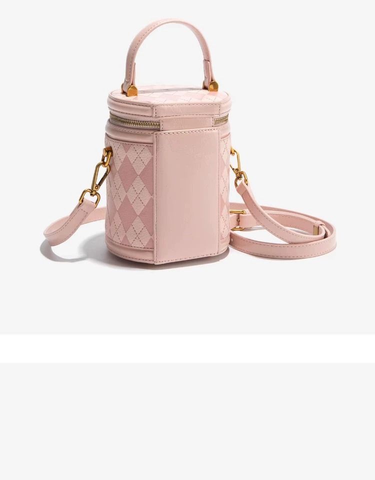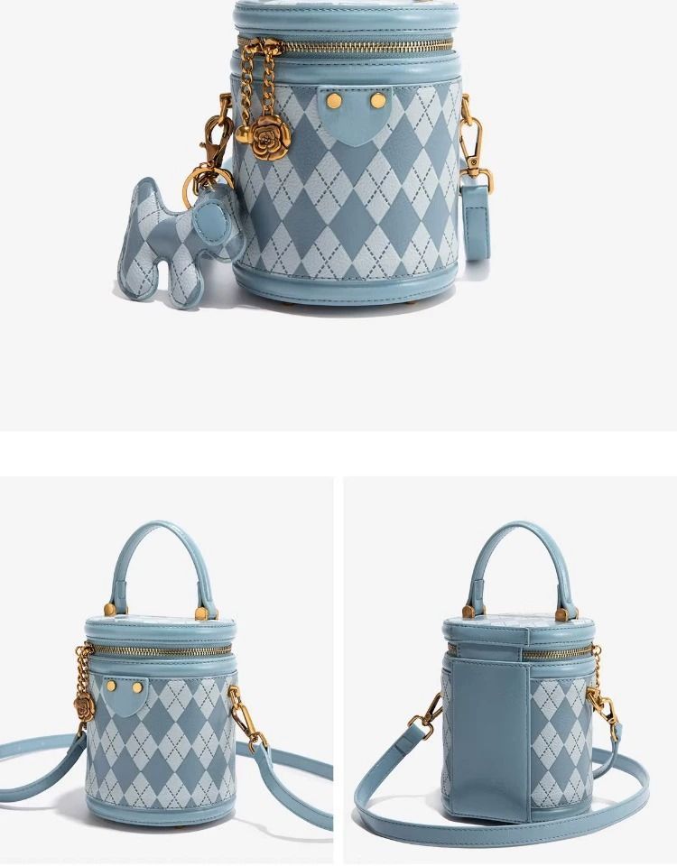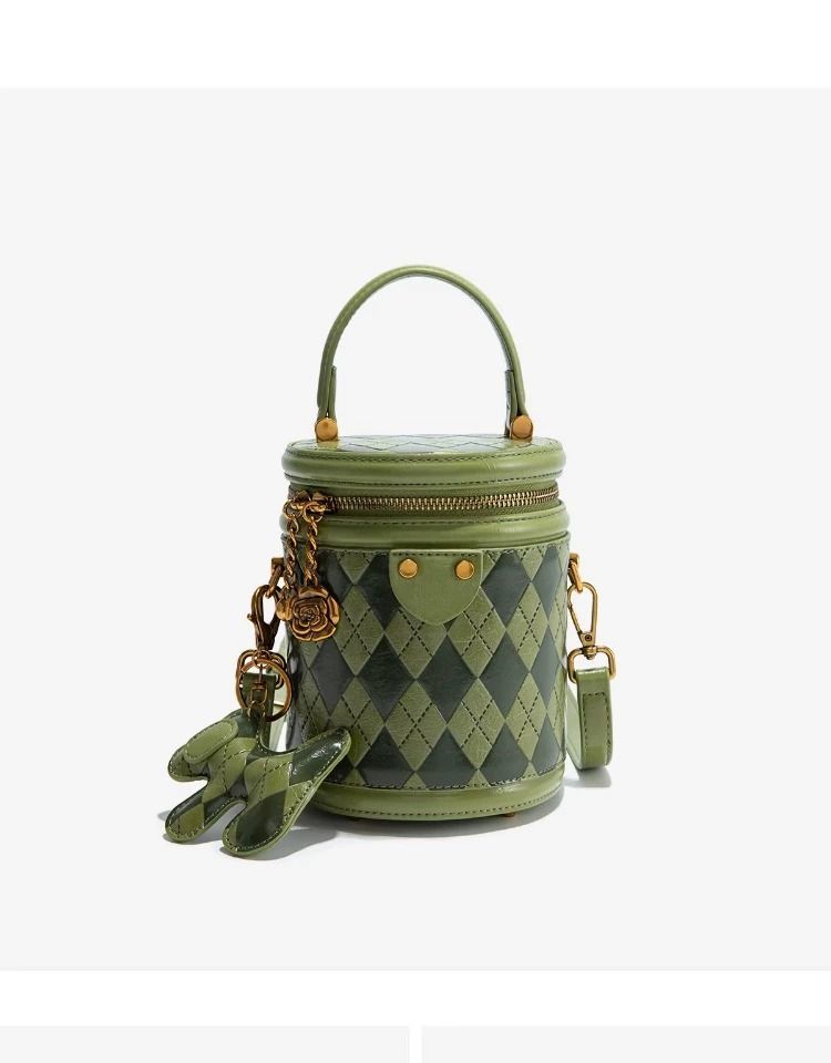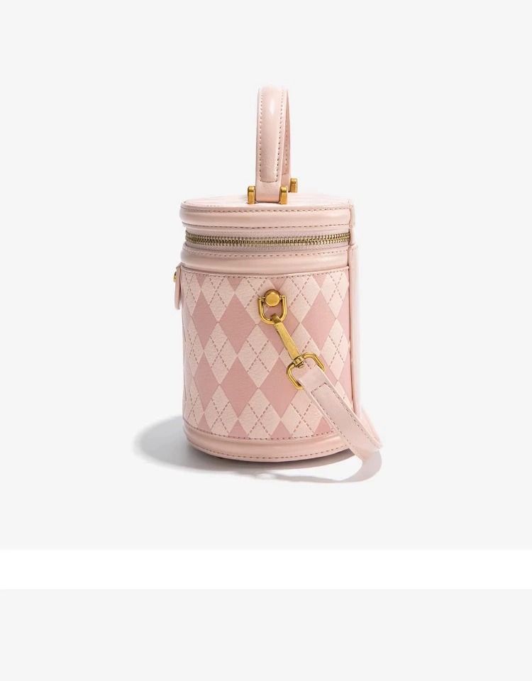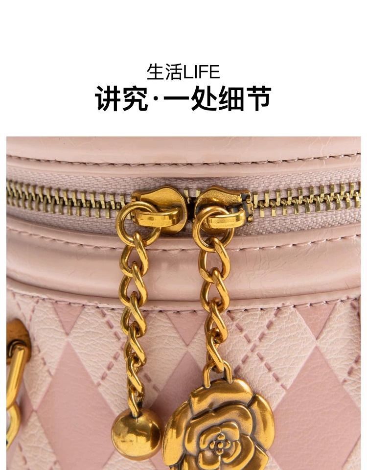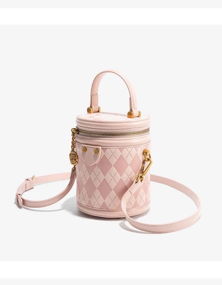 官网Candy&Kenny时尚菱格水桶包女2024新款小众设计高级感圆