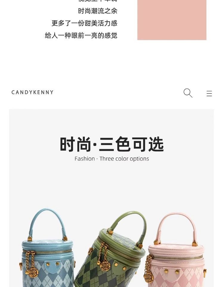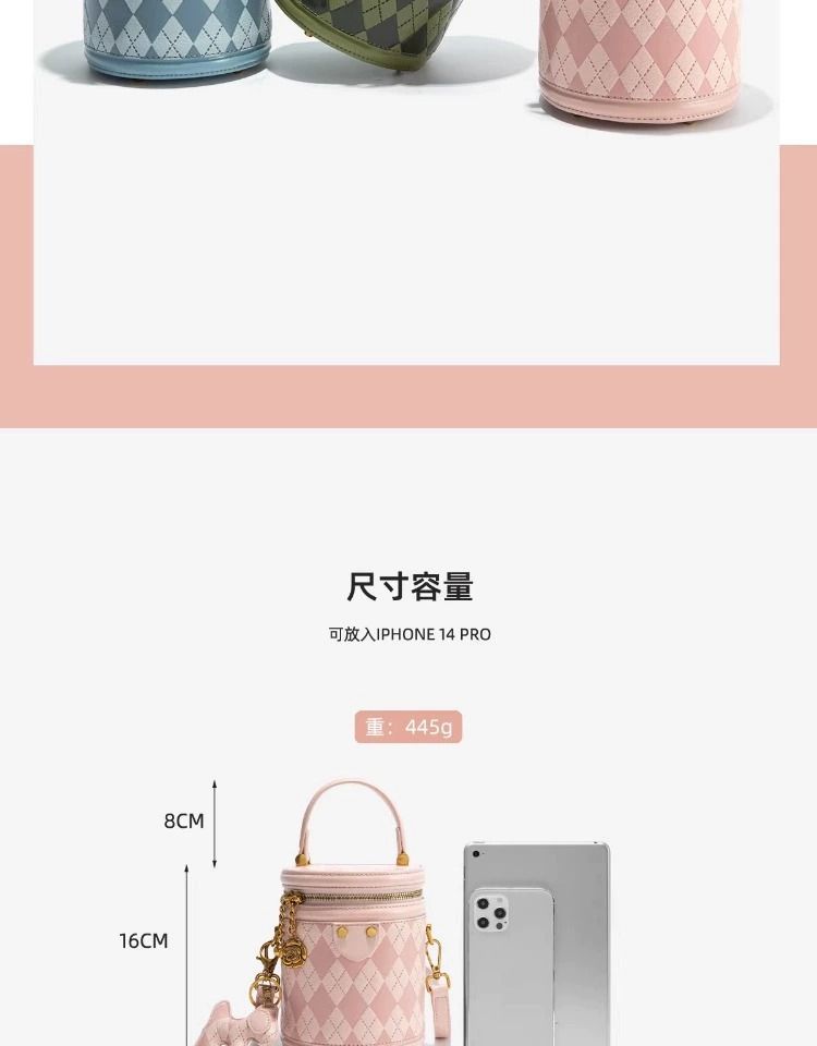 官网Candy&Kenny时尚菱格水桶包女2024新款小众设计高级感圆 投诉