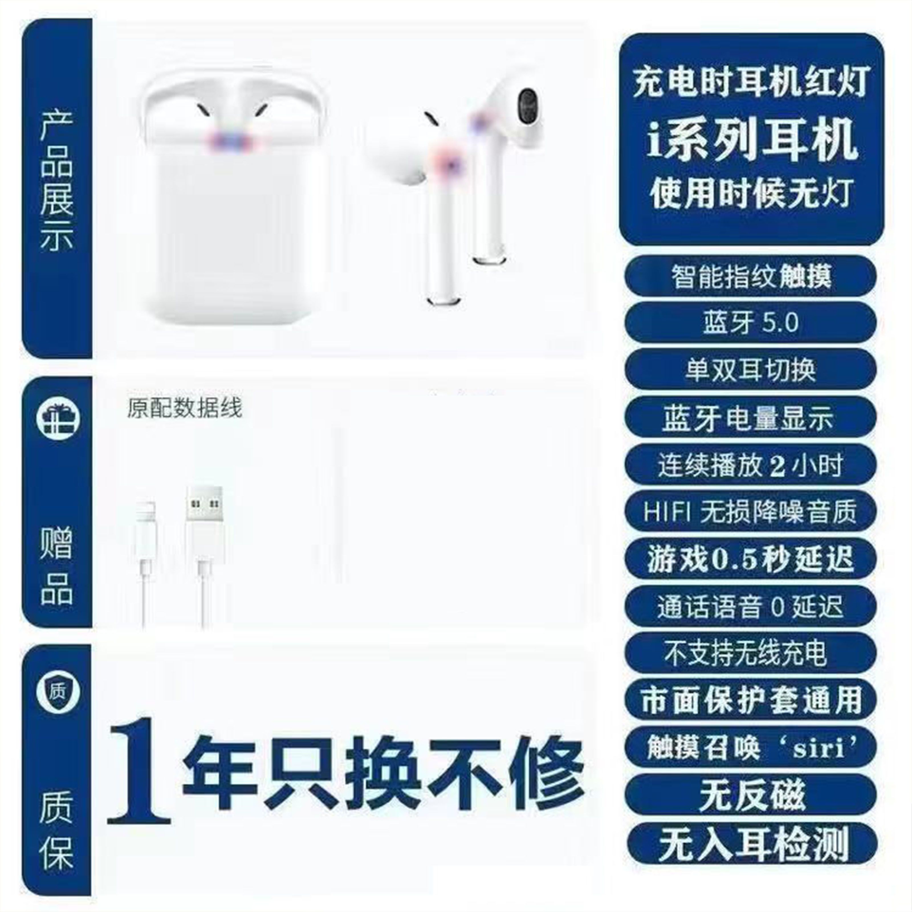 佩戴方式: 入耳式 防水级别: IPX5 耳机类别: 真无线耳机 降噪功能: 被动降噪(物理降噪) 蓝牙功能: 蓝牙5.2 重量: 0.5 kg/件 装箱信息:长宽高:50X40X40cm 装箱重量: 10KG 装箱数量:50pcs