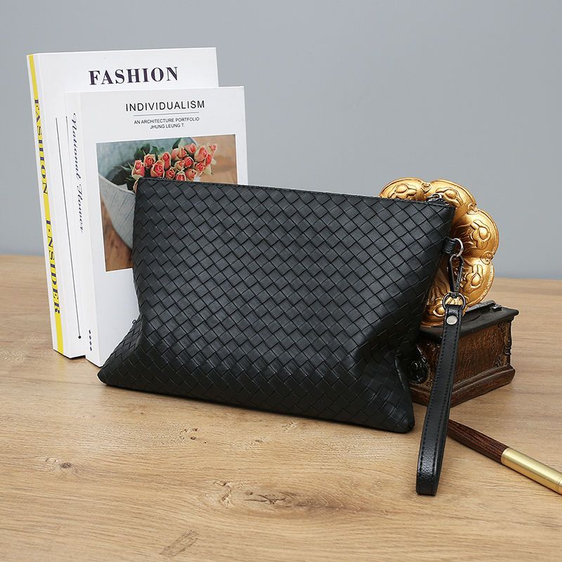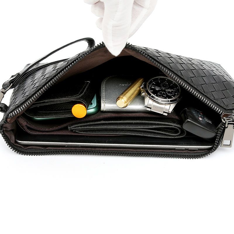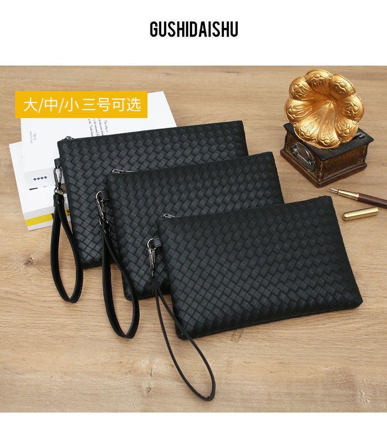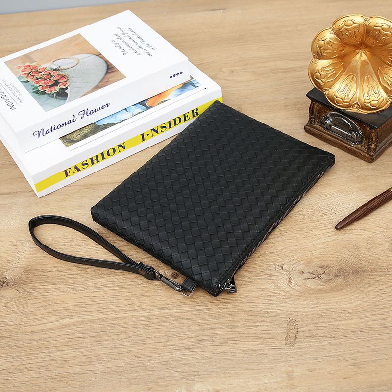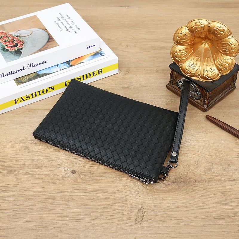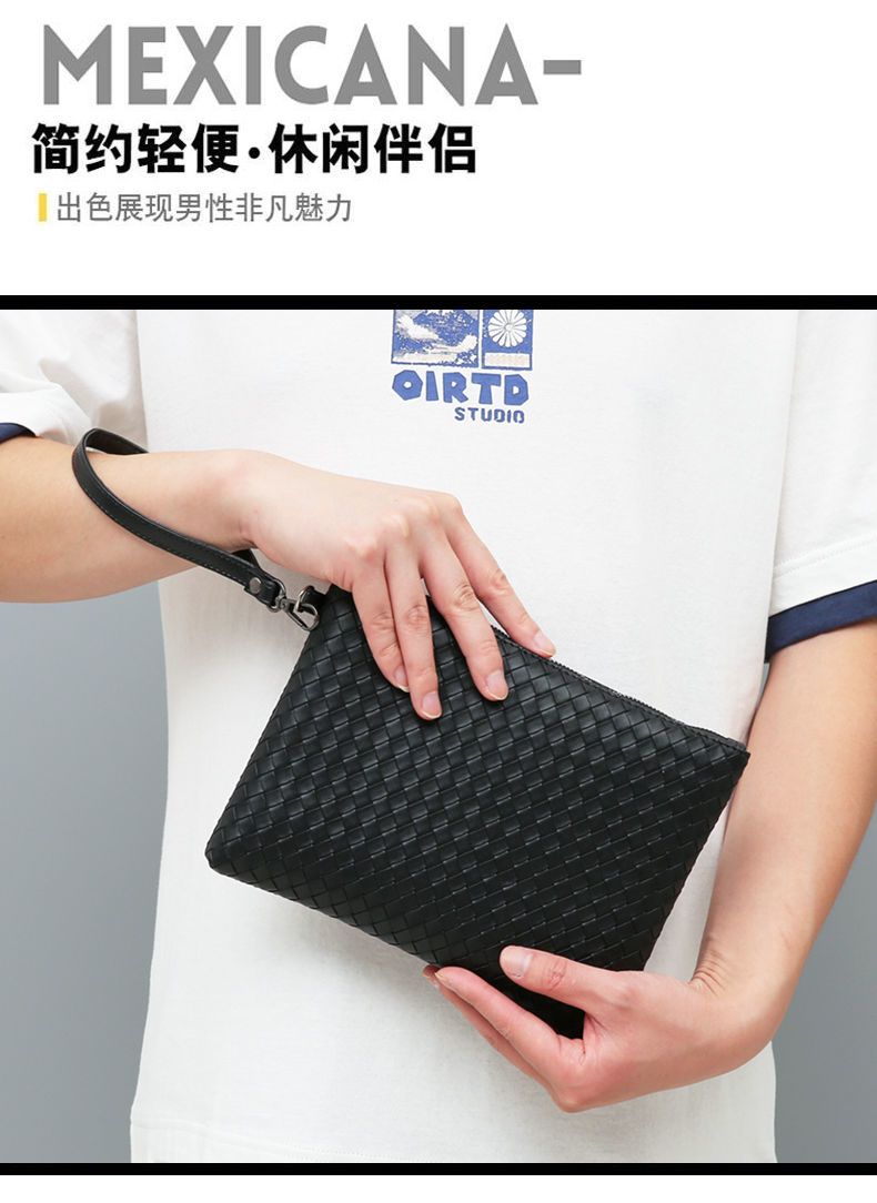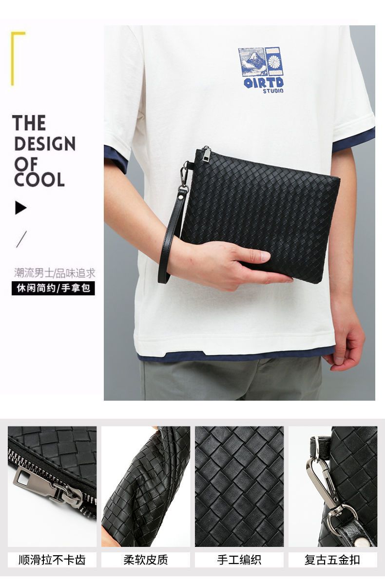 新款男士手包软皮编织手拿包男款钱包大容量商务手抓包休闲信封包