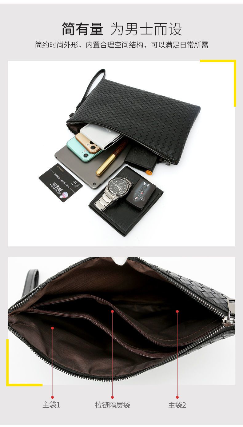 新款男士手包软皮编织手拿包男款钱包大容量商务手抓包休闲信封包 投诉