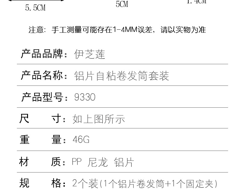 盒装带铝片刘海卷发筒 自粘头顶蓬松发卷 定型卷发器 空心卷 投诉
