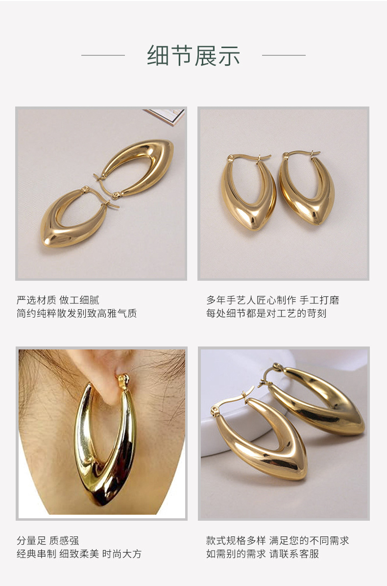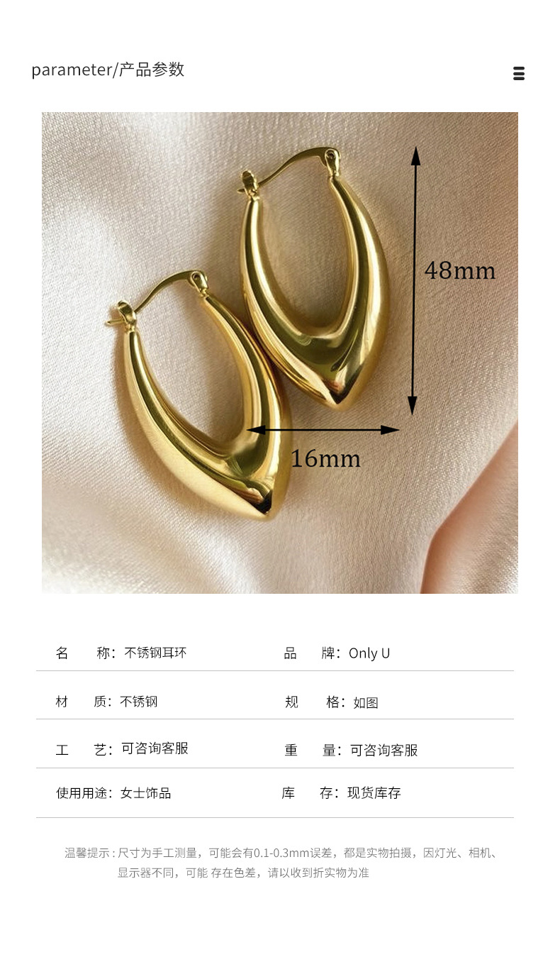 跨级新品时尚几何轻奢风u形不锈钢耳环光面空心时尚简约耳饰批发 English | 投诉