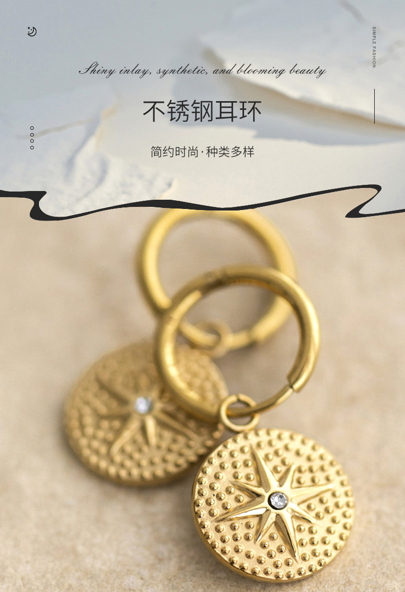 法式复古不锈钢耳钉女时尚轻奢风八芒星镶钻锆石耳环耳饰女饰品 English | 投诉