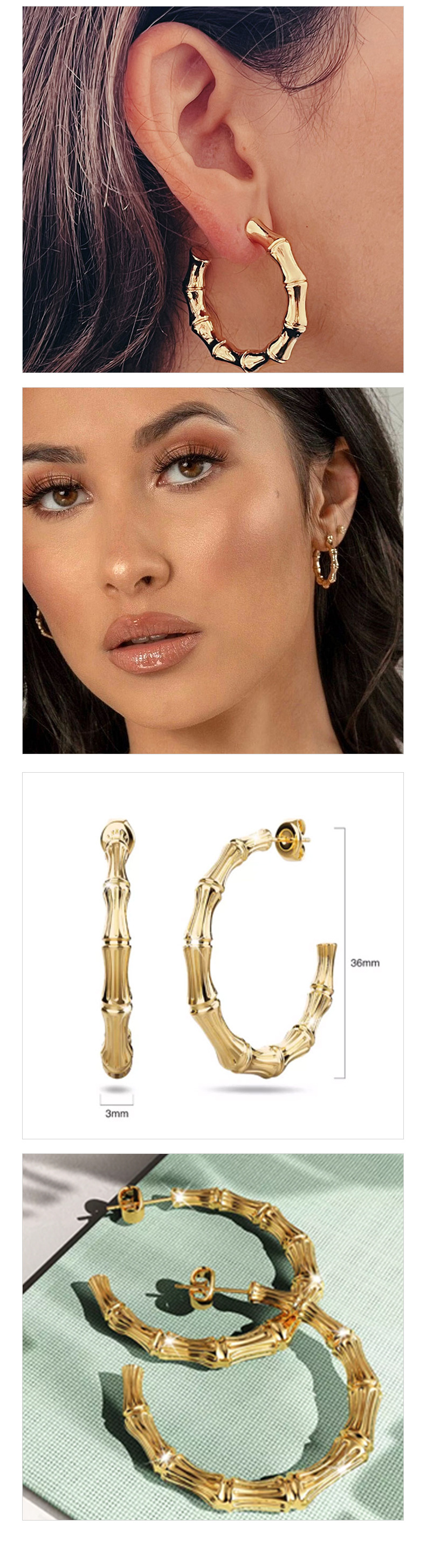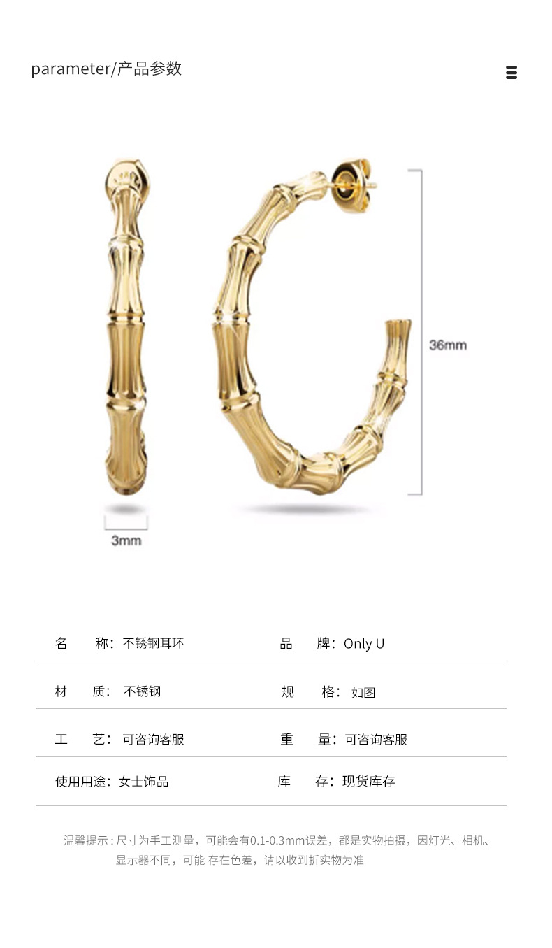 时尚竹节压花耳圈ins网红轻奢感简约耳环耳饰不锈钢气质耳环批发 English | 投诉