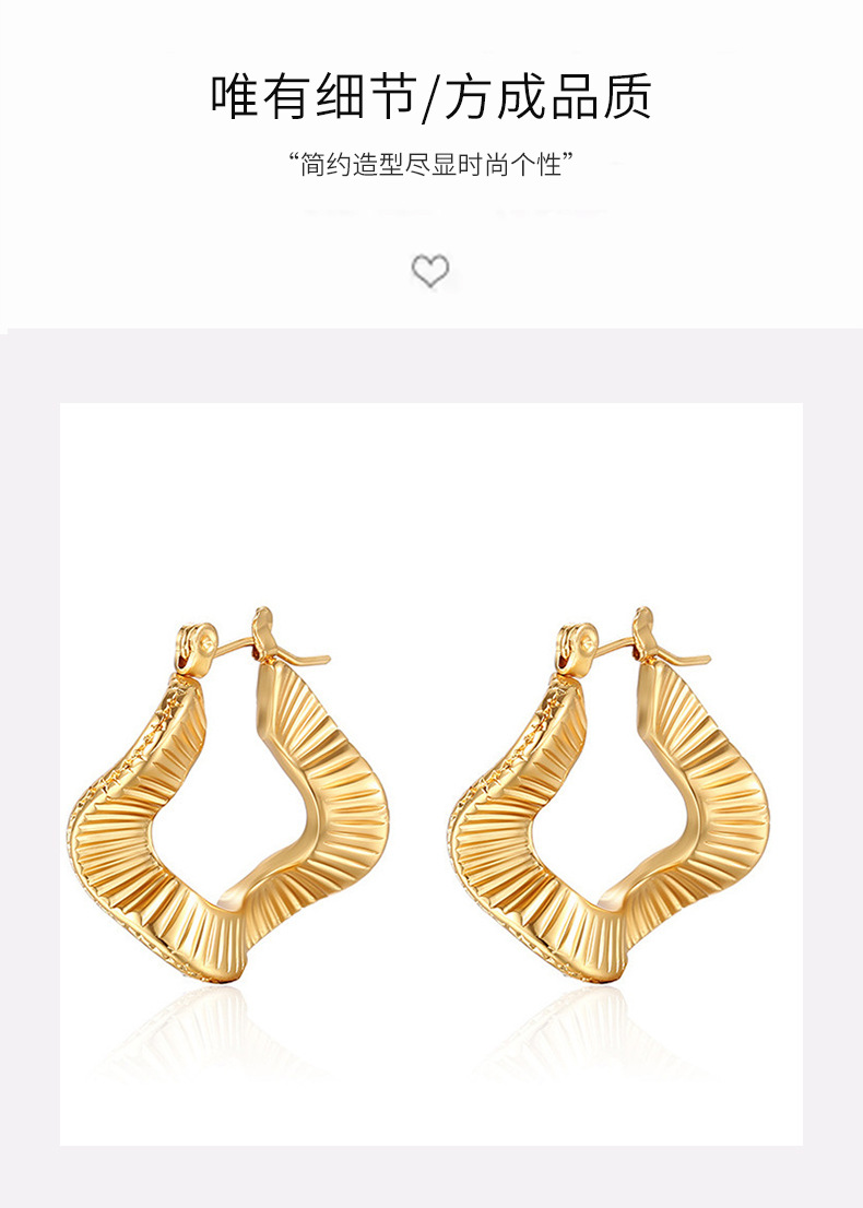 欧美跨境ins风C形耳环钛钢几何条纹法式高级感半圆大耳钉耳饰批发 English | 投诉