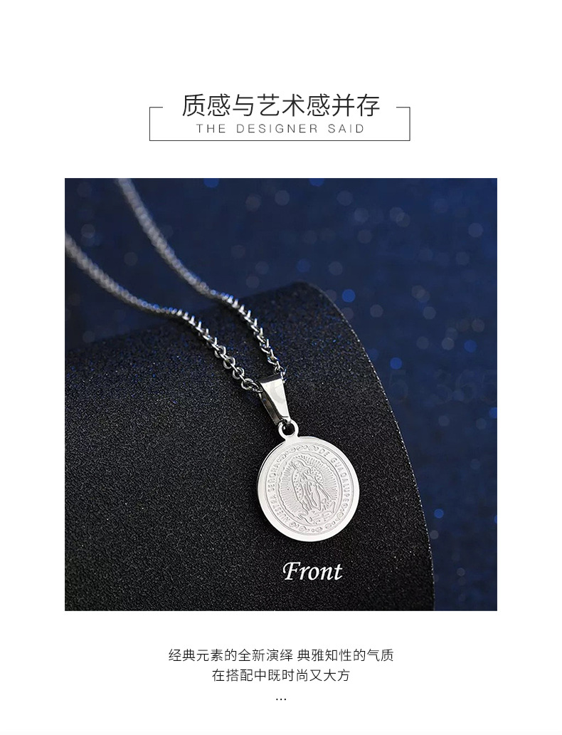 跨境新品简约复古双面圆牌钱币吊坠项链不锈钢宗教圣母玛利亚项链