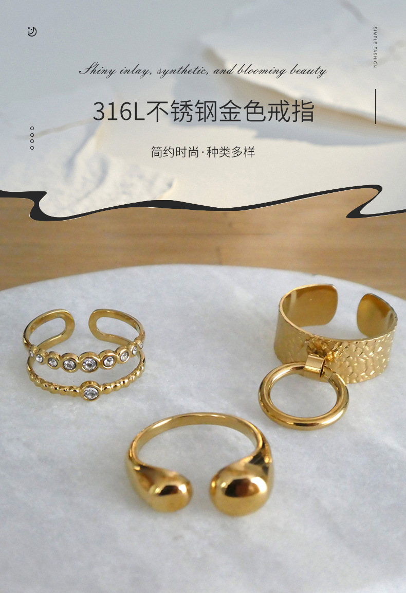 欧美个性简约手饰食指关节不锈钢开口戒指金色女小众设计现货批发 English | 投诉