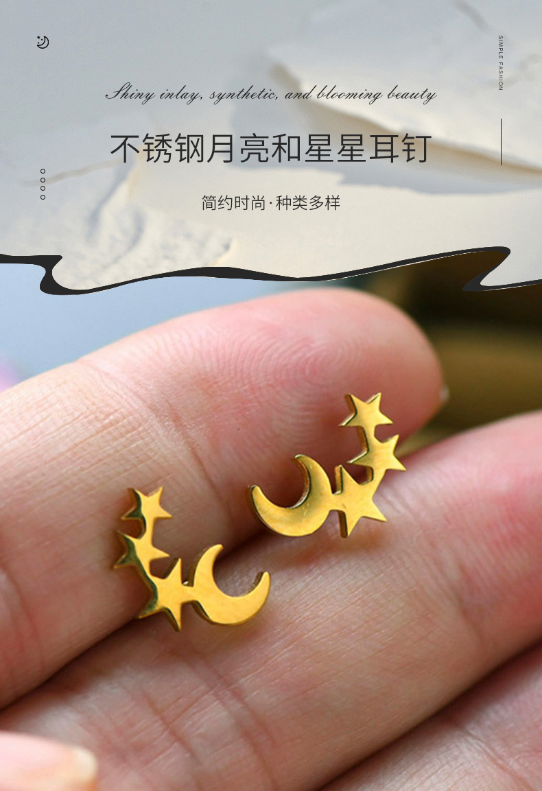 厂家供应创意不锈钢月亮星星耳钉 时尚简约饰品星星月亮耳钉女式 English | 投诉